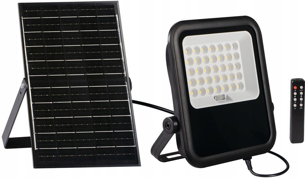 Naświetlacz solarny LED 15W czarny z pilotem i panelem solarnym IP65 Kanlux Kanlux FL SONE SLR to naświetlacz zasilany energią słoneczną. Do wyboru mamy dwie moce naświetlacza 10 i 15W. Szczelność IP65 sprawia, że naświetlacz jest odporny na warunki atmosferyczne i można go bez obaw używać na zewnątrz. Regulowany adapter to możliwość montażu naświetlacza w dogodnej dla nas pozycji, ponadto panel solarny i naświetlacz możemy zamontować oddzielnie i podłączyć za sobą przewodem zasilającym o długości 200cm. Dla większej wygody do obsługi naświetlacza użyjesz dołączonego pilota. Parametry techniczne: kod producenta: 36607 Kolekcja: FL SONE SLR Źródło światła: wbudowany LED Żarówka: wbudowany LED 15W Temperatura barwy światła: 4000K Barwa światła LED: neutralna Strumień świetlny [lm]: 2200 Materiał: tworzywo sztuczne / szkło Kolor: czarny / biały Liczba punktów świetlnych: 1 Czujnik ruchu: nie Czujnik zmierzchu: nie Zasilanie solarne: tak Pilot: tak Stopień szczelności: IP65 Napięcie znamionowe [V]: 3.2V Wbudowany akumulator: tak Długość gwarancji: 2 Gwarancja: 2 lata Wysokość w cm: 30.6 cm Szerokość w cm: 27 cm Głębokość w cm: 4.9 cm Promowane: Kanlux Wrzesień Kod EAN: 5905339366078 GPSR: Nazwa producenta: Kanlux S.A. GPSR: Telefon producenta: +48 32 388 74 60 GPSR: Adres producenta: ul. Objazdowa 1-3 41-922 Radzionków Polska GPSR: adres email: kanlux@kanlux.com Marka: Kanlux KAN36607 Kanlux zaczynał jako mała, rodzinna firma, założona w 1989 roku. Obecnie swoją siedzibę ma już w 14 krajach europejskich. Portfolio Kanlux obejmuje szeroki asortyment oświetlenia: źródła światła, oprawy domowe, oświetlenie techniczne i inwestycyjne. Ofertą uzupełniającą są marki IDEAL TS by Kanlux i MOWION by Kanlux, czyli aparatura modułowa i osprzęt elektroinstalacyjny. Dzięki temu Kanlux oferuje kompleksowe rozwiązania – światło, które tworzy od początku do końca.