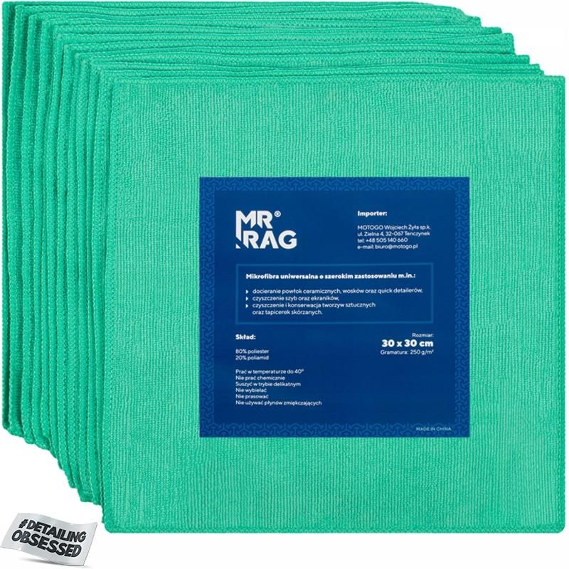 MR RAG 30x30cm green 250gsm mikrofibra zielona 12-pack zestaw / produkt zawiera: 12x MR RAG 30x30cm green 250gsm naklejka #DETAILING OBSESSED do każdego zamówienia Mikrofibra uniwersalna wysokiej jakości o szerokim zastosowaniu, między innymi: docieranie powłok ceramicznych, wosków oraz quick …