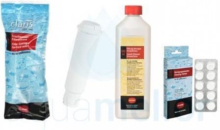 ZESTAW:- Oryginalny filtr Claris NIRF700- Płyn do czyszczenia obwodów mleka NIRK705- Tabletki czyszczące do ekspresu 10 sztuk NIRT701 Oryginalny filtr Claris NIRF700 dedykowany jest do wszystkich ekspresów marki Nivona. Filtr Claris NIRF 700 został zaprojektowany specjalnie dla automatycznych ekspresów Nivona.Wkład wypełniony jest czystym, organicznym materiałem, bez dodatków chemicznych.Filtr montuje się bezpośrednio do zbiornika na wodę. Wkłady filtracyjne Claris pomagają chronić urządzenie i zwiększać jego wydajność i trwałość. Przy regularnej wymianie filtra zmniejsza się tworzenie kamienia w ekspresie, a konieczność odkamieniania całego urządzenia jest rzadsza.Dodatkowo stosowanie wkładu korzystnie wpływa na aromatyczny smak i zapach przygotowanego napoju.Dlaczego warto wybrać filtr Claris?- wypełniony jest wyłącznie materiałem organicznym,- brak chemicznych dodatków,- ochrona ekspresu i wydłużony okres jego eksploatacji,- efektem jest pyszna kawa pełna wyrazistego smaku i aromatu. Warto także pamiętać o regularnej wymianie wkładu filtrującego, aby zawsze cieszyć się świeżą i czystą wodą. Dodatkowym atutem stosowania filtracji jest brak osadzania się kamienia wewnątrz urządzenia, co zmniejsza ryzyko jego awarii. Płyn do czyszczenia obwodów mleka CreamCleanJest to oryginalny produkt marki niemieckiego producenta Nivona.Środek skutecznie zmywa pozostałości mleka z systemu spieniania. Czyści zdecydowanie, bezpiecznie i nie wpływa na walory smakowe przyrządzanej kawy. Prosty i szybki sposób użycia.Zalecane proporcje do użycia CreamClean to 1:10 z wodą. Jeżeli jest potrzeba usunięcia bardziej uporczywego brudu można zmienić proporcje. Stosowanie produktu CreamClean zapewni higieniczne użytkowanie spieniacza Spumatore. Regularne stosowanie preparatu zachowa właściwości smakowe przyrządzanej oraz pozwoli uniknąć kosztownych napraw w autoryzowanym serwisie. Tabletki czyszczące dedykowane do ekspresów ciśnieniowych Nivona NIRT701.Tabletki czyszczące zostały stworzone, aby jak najlepiej zadbać o ekspres do kawy. Produkt doskonale rozpuści oraz usunie wszelki osad zalegający wewnątrz urządzenia oraz rozpuszcza olejki kawowe znajdujące się na ściankach układu orz modułu zaparzającego.Stosowanie produktu sprawi także, że ekspres stanie się wydajniejszy i zabezpieczy go przed niechcianymi awariami i kosztowną wizytą serwisanta. Cechy produktu:- specjalna formuła stworzona dla optymalnego i bezpiecznego czyszczenia, - rozpuszczanie i usunięcie pozostałości po kawie- ochrona ekspresu,- poprawia smak i zapach kawy,- do automatycznych ekspresów do kawy,- odpowiednie do wszystkich ekspresów CafeRomatica. Watro pamiętać, że regularne czyszczenie chroni ekspres i pozwala zachować idealny smak i aromat parzonej kawy.Tabletki należy je stosować zgodnie z instrukcją ekspresu, który posiadasz.Opakowanie zawiera 10 szt. tabletek czyszczących Nivona to znany niemiecki producent ekspresów ciśnieniowych do kawy z siedzibą w Norymberdze. Firma prowadzi szeroką ofertę automatycznych ekspresów ciśnieniowych do kawy, a także części i akcesoriów do nich.