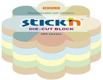 Notes samoprzylepny kwiatek Stickn Notes samoprzylepny w kształcie kwiatka o wymiarach 67×67 mm, doskonały do robienia krótkich notatek i zostawiania ważnych wiadomości. Zawiera miks kolorów: po 50 karteczek z papieru z recyklingu w kolorze niebieskim, żółtym i zielonym oraz 2 x po 50 karteczek z papieru niebielonego, co daje w sumie 250 karteczek. Klej został nałożony na jednym z brzegów karteczki. Każdy notes kostka zabezpieczony jest folią przed pobrudzeniami i uszkodzeniami. Krótkie cechy: Notes samoprzylepny w kształcie kwiatka o wymiarach 67×67 mm Zawiera 250 karteczek w miksie kolorów: niebieskim, żółtym, zielonym oraz niebielonym Klej nałożony na jednym z brzegów karteczki Idealny do robienia krótkich notatek i zostawiania ważnych wiadomości Zabezpieczony folią przed pobrudzeniami i uszkodzeniami