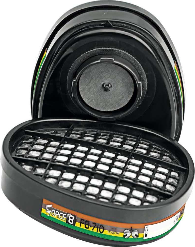 POCHŁANIACZ - MAS-FOR-FIL-ABEK Pochłaniacze wymienne do półmaski FORCE8™ i maski FORCE10™ - typ ABEK1. - przeznaczone do gazów, oparów związków organicznych, nieorganicznych i kwasowych oraz do amoniaku - dostępne w woreczku z zawieszką - małe opakowanie 2 szt. - spełniają wymagania normy EN14387 …