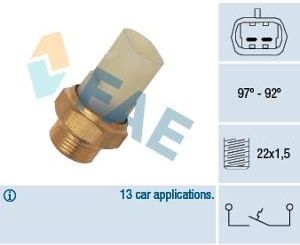 Wentylator chłodnicy uruchamiany jest czujnikiem umiejscowionym w bloku silnika. Termowłącznik ten, działając na zasadzie bimetalu, pod wpływem wzrostu temperatury cieczy chłodzącej powoduje zwarcie styków i zamknięcie obwodu elektrycznego uruchamiającego wentylator chłodnicy. Jest to ważny element układu chłodzenia silnika. Niesprawny termowłącznik może doprowadzić do przegrzania silnika, co może skutkować uszkodzeniem głowicy lub nawet zatarciem silnika lub też, gdy będzie działał non stop może powodować niedogrzanie silnika poprzez ciągłą pracę wentylatora chłodnicy. Uszkodony należy wymienić na nowy. Od 1952 roku firma FAE jest producentem części elektrycznych między innymi termowłączników oraz innych typów czujników dla rynku motoryzacyjnego.