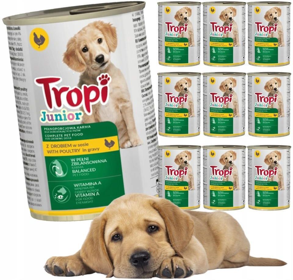 Tropi JUNIOR Mokra karma dla psa z Drobiem 10x415 g Tropi Junior Mokra karma dla psa z Drobiem 10x415g Pełnoporcjowa karma dla psa Wiek psa: Junior - szczenięta i młode psy Wielkość psa: Wszystkie rasy Smak: Drób Opakowanie: 10 puszek po 415g Pełnoporcjowa mokra karma dla szczeniąt i młodych psów …