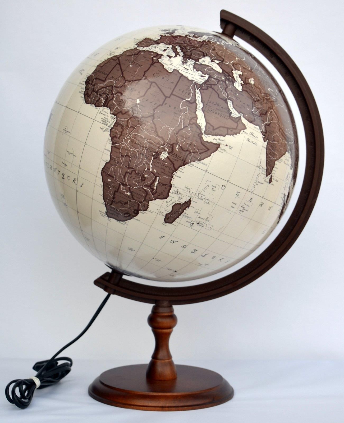 Globus 320 antyczny podświetlany drewniana stopka ❤️ Zachem ❤️ ✔️ Duży dekoracyjny globus podświetlany antyczny o średnicy k-i 32cm z drewnianą podstawą. Dzięki eleganckiej kolorystyce globus ten stanowi gustowny element wyposażenia każdego wnętrza. Polecamy na prezent! EAN: 5906727902632 …