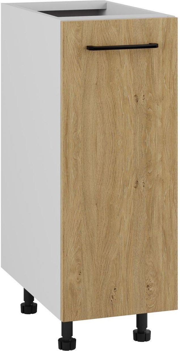 BARI SZAFKA DOLNA CARGO DC-30 DĄB KAMIENNY to funkcjonalna i wygodna w użytkowaniu szafka dolna do kuchni ze zintegrowanym hamulcem cichego domknięcia oraz koszem Cargo. Kolekcja kuchni Komfort idealnie sprawdzi się w roli mebli kuchennych w stylu rustykalnym i skandynawskim. Imitowane na meblach kuchennych drewno naturalne doskonale odzwierciedla strukturę dębu kamiennego, wnosząc do wnętrza przytulność oraz wizualne ocieplenie. Produkt o wymiarach 30 cm szerokości, 82 cm wysokości oraz 53 cm głębokości – wykonany został z niezawodnej, trwałej i łatwej w pielęgnacji płyty laminowanej.