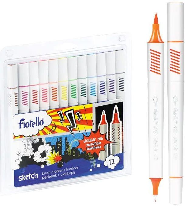 Fiorello Pisaki Sketch Dwustronne 12 Kolorów Gr F726 12 Artykuły piśmiennicze pełnią kluczową rolę w codziennym życiu, zarówno w biurach, szkołach, jak i w trakcie twórczych hobby. Wśród nich, pisaki wyróżniają się jako wszechstronne narzędzia, które umożliwiają wyrażanie pomysłów i kreatywności. Jednym z takich produktów są pisaki Fiorello Sketch, które łączą jakość wykonania z funkcjonalnością, idealnie sprawdzając się w różnorodnych zastosowaniach artystycznych. Innowacyjna konstrukcja Fiorello Sketch to innowacyjne narzędzie piśmiennicze, które cechuje się podwójną końcówką – pędzelkiem oraz cienkopisem. Dzięki tej unikalnej konstrukcji użytkownicy mogą łatwo przechodzić od precyzyjnego rysowania cienkich linii do tworzenia grubych, płynnych linii. Tego typu wszechstronność czyni je idealnym wyborem do realizacji różnorodnych projektów artystycznych, takich jak bullet journale, komiksy, ilustracje oraz szkice. Końcówka pędzelkowa pozwala na rysowanie linii o różnej grubości, co stwarza nieograniczone możliwości twórcze. Z kolei cienka końcówka, oferująca grubość 0,4 mm, doskonale nadaje się do detali, co sprawia, że produkt jest niezwykle praktyczny. Dodatkowo, produkty te są zgodne z wymogami Unii Europejskiej, co potwierdza ich wysoką jakość i bezpieczeństwo użytkowania. Materiały i bezpieczeństwo Pisaki wykonane są z wysokiej jakości materiałów, co zapewnia ich trwałość oraz estetyczny wygląd. Dzięki zastosowaniu solidnych komponentów, narzędzie to jest odporne na uszkodzenia i długotrwałe użytkowanie. Bezpieczne wentylowane zatyczki minimalizują ryzyko w przypadku przypadkowego połknięcia, co jest szczególnie istotne w przypadku dzieci i młodzieży. Dbałość o bezpieczeństwo użytkowników sprawia, że narzędzie to jest odpowiednie dla szerokiego kręgu odbiorców, zarówno w kontekście edukacyjnym, jak i artystycznym. Funkcje i zalety Pisaki Fiorello Sketch oferują szereg funkcji, które sprawiają, że są wyjątkowe i wartościowe dla użytkowników. Warto zwrócić uwagę na następujące cechy: Podwójna końcówka: pędzelek i cienkopis w jednym narzędziu, co zwiększa wszechstronność. Możliwość rysowania linii o różnej grubości: od cienkich detali (0,4 mm) do grubszych linii (0-6 mm), co pozwala na elastyczność w tworzeniu różnych stylów. Bezpieczne wentylowane zatyczki: ochrona przed przypadkowym połknięciem, zwiększająca bezpieczeństwo użytkowania. Zgodność z wymaganiami UE: gwarancja jakości i bezpieczeństwa. Te właściwości sprawiają, że narzędzie jest idealne dla artystów, uczniów oraz wszystkich osób, które pragną rozwijać swoje umiejętności plastyczne w różnych dziedzinach – od rysunku po malarstwo.