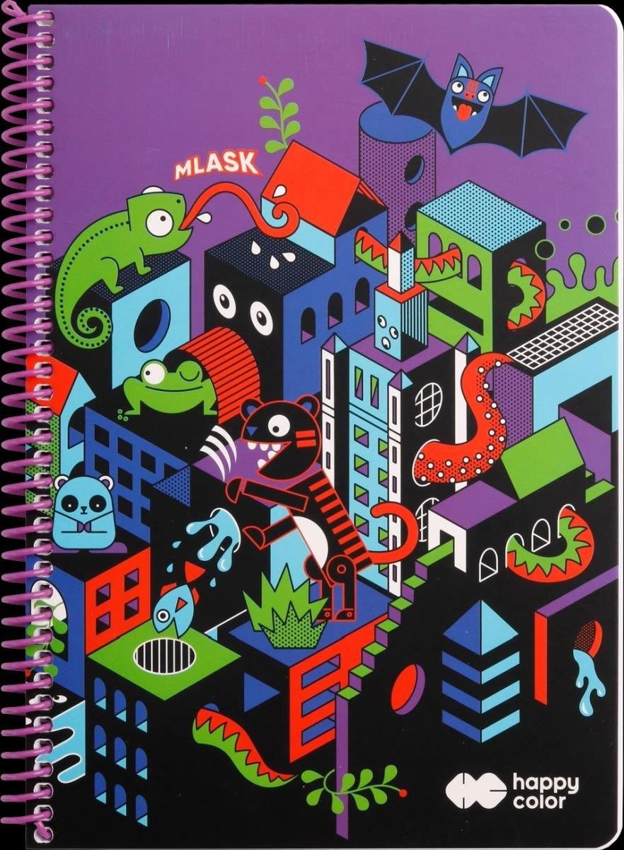 Design kolekcji Me&City, przedstawiającej surrealistyczny miejski gąszcz przygód różnych niebanalnych postaci. Szczegóły produktu Sztywna okładka, Spirala dopasowana kolorystycznie do designu okładki, Biały papier 80g w szarą kratkę, 80 kartek, Format: B5 Kraj produkcji: PL