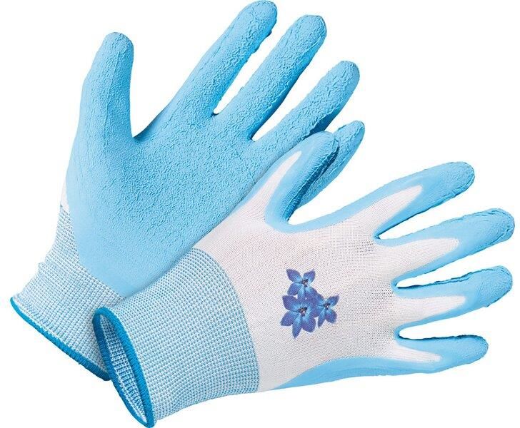 LUX-TOOLS Rękawice ogrodowe lateksowe niebieskie rozm. 8Lateksowe rękawice do prac w ogrodzie, zabezpieczone niebieską pianką lateksową, dzięki której są wysoce odporne na uszkodzenia. Doskonale chronią dłonie. Są też elastyczne oraz idealnie dopasowane do rąk. Oferowany produkt spełnia normy EN 420, czyli ogólne wymagania dotyczące rękawic.Niebieskie rękawice do prac w ogrodzie z delikatnym zdobieniem kwiatowym w rozmiarze 8 (M). W naszej ofercie dostępny jest także rozmiar 7 (S).
