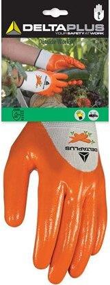 Na przedniej stronie rękawiczki znajduje się napis Deltaplus Rękawica jest wykonana z poliestru i ma powłokę nitrylową Te rękawice ochronne chronią przed zagrożeniami mechanicznymi Rękawice te są odporne na ścieranie, cięcie i przebicie Od ponad 40 lat zadanie Delta Plus polega na ochronie ludzi podczas pracy. Delta Plus projektuje, produkuje i sprzedaje kompleksowy asortyment osobistych akcesoriów ochronnych, aby chronić ludzi od stóp do głów.