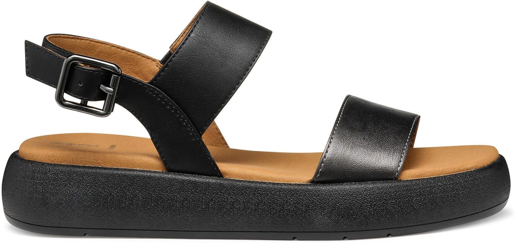 Sandały Geox w szarym kolorze to doskonałe połączenie elegancji i innowacyjnych rozwiązań. Wyposażone w technologię Geox Respira, zapewniają wyjątkową przewiewność, co sprawia, że są idealnym wyborem na cieplejsze dni. Wykonane z imitacji skóry, łączą stylowy wygląd z trwałością. Zapięcie na sprzączkę pozwala na idealne dopasowanie do stopy, gwarantując komfort i stabilność podczas noszenia. Te damskie sandały to praktyczny i stylowy wybór, który doskonale sprawdzi się w codziennych stylizacjach.