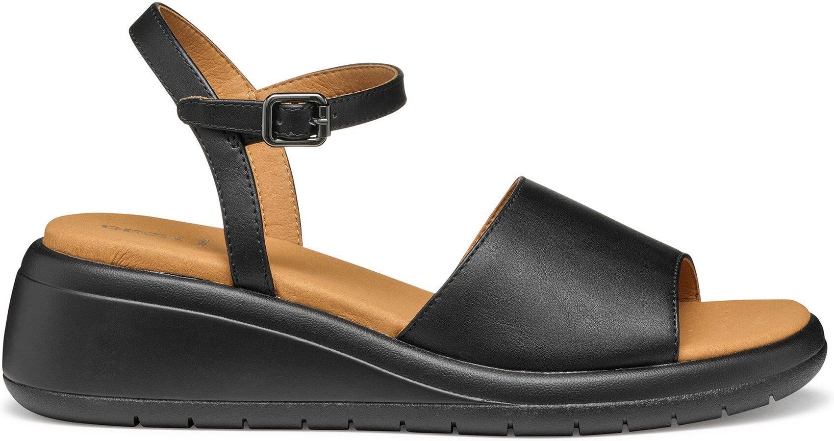 Sandały Geox to synonim elegancji i komfortu w letnim wydaniu. Utrzymane w klasycznym czarnym kolorze, doskonale wpiszą się w każdą stylizację, od codziennej po bardziej formalną. Koturn subtelnie podkreśla sylwetkę, zapewniając jednocześnie wygodę przez cały dzień. Zapięcie na sprzączkę pozwala na idealne dopasowanie, a zastosowana technologia Geox Respira zapewnia doskonałą przewiewność i komfort termiczny. Wykonane z imitacji skóry, sandały te łączą styl z funkcjonalnością – idealny wybór na ciepłe dni!
