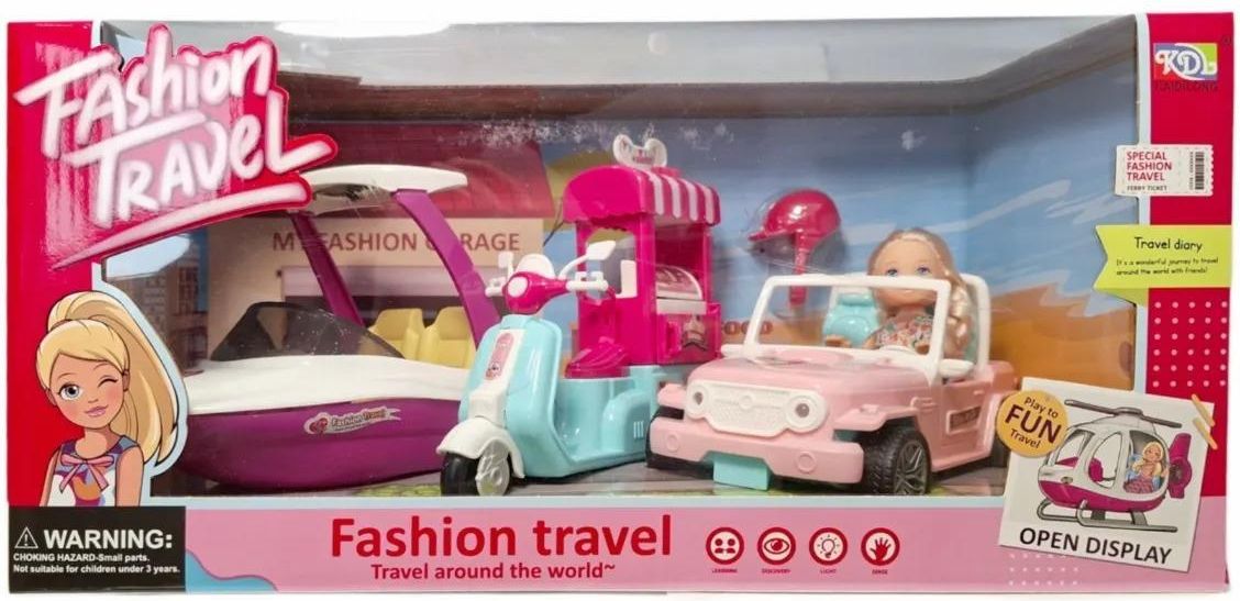 Zestaw lalka z pojazdami i akcesoriami. W komplecie samochód, skuter z cukiernią, łódka i dodatki do zabawy. Wybrane elementy zestawu działają na baterie typu AG13. Baterie znajdują się w zabawce. Zabawka przeznaczona dla dzieci od lat 3. Zestaw zapakowany w kartonowe pudełko. Podane wymiary są wymiarami opakowania. EAN: 5902496212149