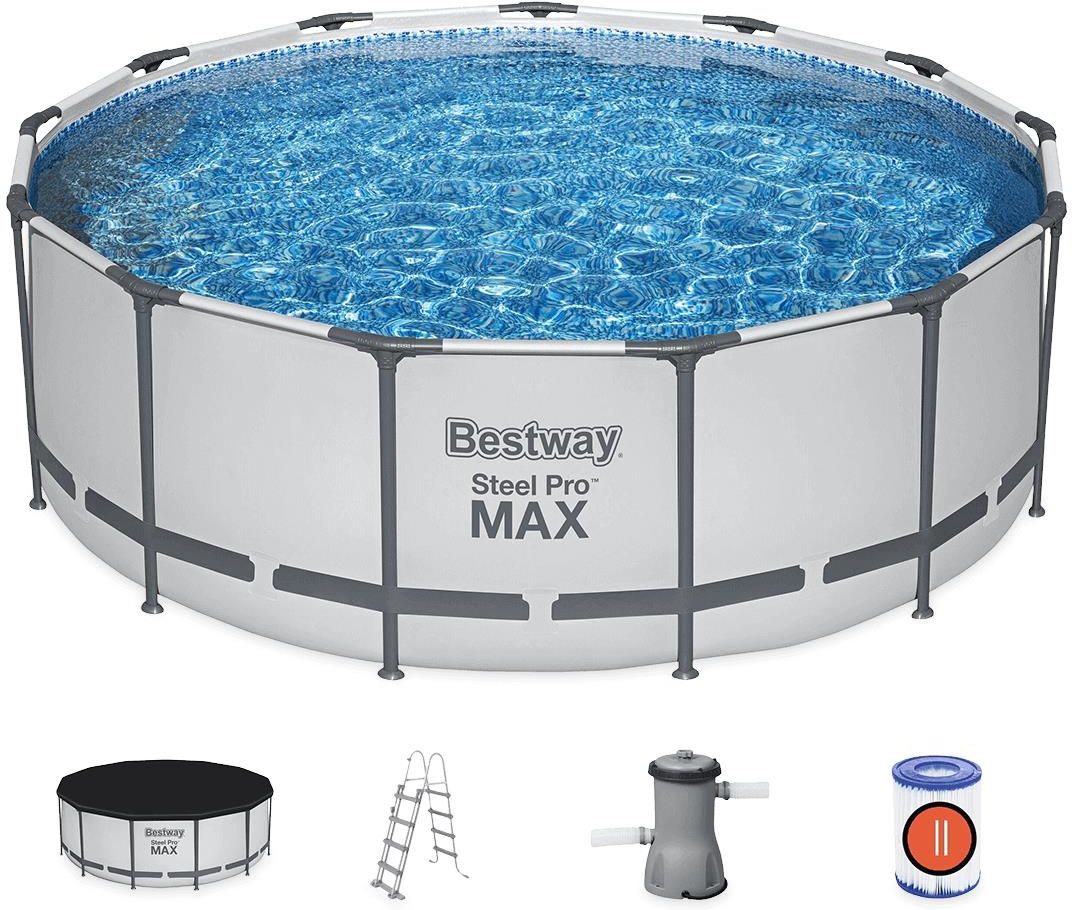OpisZapraszamy do wprowadzenia do swojego ogrodu luksusowego i wyjątkowego basenu ogrodowego na stelażu STEEL PRO MAX. Stwórz swoją oazę spokoju i relaksu, gdzie wakacyjna atmosfera będzie zawsze na wyciągnięcie ręki. Dzięki solidnym ścianom basenu zbudowanym z innowacyjnego materiału DuraPlus™, wzmocnionego siatką poliestrową i dwoma warstwami PVC, nasz basen zapewni Ci niezrównaną wytrzymałość i trwałość przez wiele sezonów letnich kąpieli. System ClickConnect™ sprawia, że montaż staje się łatwy i przyjemny, a stalowy stelaż, odporny na korozję, gwarantuje stabilność i bezpieczeństwo podczas użytkowania. Montaż naszego basenu to zaledwie 20 minut, dzięki czemu szybko będziesz mógł cieszyć się orzeźwiającą wodą w gorące letnie dni. Kompatybilność z różnymi systemami filtrującymi, takimi jak Flowclear™, zapewnia Ci czystość wody przez cały czas użytkowania basenu. W zestawie znajdziesz wszystko, czego potrzebujesz do rozpoczęcia sezonu kąpielowego: jeden basen, pompa filtrująca, drabina ułatwiająca wejście i wyjście z wody, przykrycie basenu na noc oraz łatka naprawcza na wypadek drobnych uszkodzeń. Daj sobie luksus i komfort, który zasługujesz, i wprowadź do swojego życia nasz basen ogrodowy na stelażu STEEL PRO MAX. Oaza spokoju i relaksu czeka na Ciebie!Cechy produktuPojemność wodna (90%): 12 690 l (3,352 gal.) Ściany basenu są zbudowane z DuraPlus™, materiału wzmocnionego rdzeniem z siatki poliestrowej i dwóch warstw PVC o dużej grubości, co zapewnia doskonałą wytrzymałość i trwałość ClickConnect System™ — doskonały, odporny na korozję stalowy stelaż z technologią quick-click dla łatwego montażu Nadruk Realistic Prismatic Stone™ zapewnia basenowi piękny wygląd, z teksturą i intensywnym niebieskim kolorem w wewnętrznej części niecki Łatwy 20 minutowy montaż 220-240V~, 3028 l (800 gal.) natężenie przepływu wody przez pompę, 2195 l (580 gal.) natężenie przepływu wody w zintegrowanym systemie basenowym Kompatybilny z wkładem 58094 (II) Basen jest wyposażony w złącza zapewniające kompatybilność z pompami filtrującymi Flowclear™ Wbudowany zawór spustowy z kontrolą przepływu łączy się z wężem ogrodowym (z dołączonym adapterem), aby łatwo spuścić wodę Okrągły kształt oznacza łatwy montaż, zwiększoną stabilność i mniej marnowanej przestrzeni Zawartość: jeden basen, pompa filtrująca, drabina, przykrycie basenu, łatka naprawczaWymiaryŚrednica - 396 cmWysokość - 122 cm