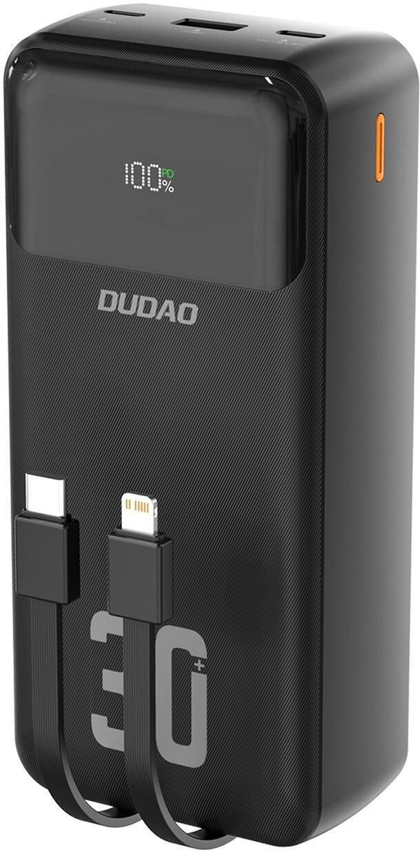 Kod produktu: 1028155Powerbank Dudao K15MAX to doskonałe rozwiązanie dla każdego, kto potrzebuje potężnego i niezawodnego źródła energii w każdej sytuacji. Dzięki imponującej pojemności 30000mAh możesz naładować swój smartfon wielokrotnie bez konieczności szukania gniazdka. Urządzenie oferuje szybkie ładowanie o mocy 22.5W i wspiera technologie PD oraz QC, co czyni go niezwykle uniwersalnym. Wbudowane kable USB-C i Lightning eliminują potrzebę noszenia dodatkowych przewodów. Aż pięć różnych wyjść sprawia, że możesz ładować wiele urządzeń jednocześnie. Solidna konstrukcja i minimalistyczny design dopełniają całości, czyniąc z Dudao K15MAX idealnego towarzysza w podróży i codziennym użytkowaniu. Pojemność 30000mAh gwarantuje niezależność od gniazdek Wysoka pojemność powerbanku pozwala na wielokrotne ładowanie urządzeń bez potrzeby szukania zasilania - idealne rozwiązanie na podróże, biwak czy pracę w terenie. Wsparcie dla technologii szybkiego ładowania PD i QC Umożliwia błyskawiczne ładowanie urządzeń zgodnych z technologią Power Delivery i Quick Charge - nawet do 22.5W mocy, co skraca czas ładowania do minimum. Wbudowane kable USB-C i Lightning ułatwiają codzienne użytkowanie Zintegrowane przewody eliminują potrzebę noszenia dodatkowych kabli - zawsze gotowe do działania, zawsze pod ręką. Możliwość ładowania wielu urządzeń jednocześnie Dzięki pięciu wyjściom (USB-A, USB-C, Lightning, kable wbudowane) możesz podłączyć kilka urządzeń naraz, co sprawdzi się zarówno w pracy zespołowej, jak i rodzinnej podróży. Solidna i elegancka obudowa odporna na codzienne użytkowanie Wykonany z wysokiej jakości tworzywa ABS+PC, powerbank jest nie tylko wytrzymały, ale także świetnie się prezentuje, niezależnie od miejsca i sytuacji. Najważniejsze cechy: - Ogromna pojemność 30000mAh - Z łatwością naładujesz swój smartfon, tablet czy inne urządzenia mobilne wielokrotnie, bez potrzeby ciągłego podłączania powerbanku do gniazdka. - Technologia szybkiego ładowania 22.5W PD i QC - Ciesz się błyskawicznym uzupełnianiem energii — idealne rozwiązanie w sytuacjach, gdy liczy się każda minuta. - Wbudowane kable USB-C i Lightning - Nie musisz zabierać dodatkowych przewodów - wszystko, czego potrzebujesz, masz zawsze pod ręką. - Pięć różnych wyjść ładowania - Możliwość zasilania nawet kilku urządzeń jednocześnie - wygoda i efektywność bez kompromisów. - Kompaktowa i solidna konstrukcja - Powerbank zachwyca prostym, eleganckim wyglądem i wytrzymałością, dzięki czemu sprawdzi się w każdych warunkach. Specyfikacja: - Marka - Dudao - Model - Dudao K15MAX Wejście USB-C - 5V=2.4A, 9V=2A, 12V=1.5A (Max 18W) Lightning - 5V=2A, 9V=2A, 12V=1.5A Wyjście USB-C - 5V=2.4A, 9V=2.22A, 12V=1.67A USB-A - 5V=3A, 9V=2A, 10V=2.25A, 12V=1.5A Lightning - 5V=2.4A - Materiał - ABS+PC - Kolor - czarny Zestaw zawiera: - Powerbank 30000mAh z wbudowanymi kablami PD 22.5W - czarny