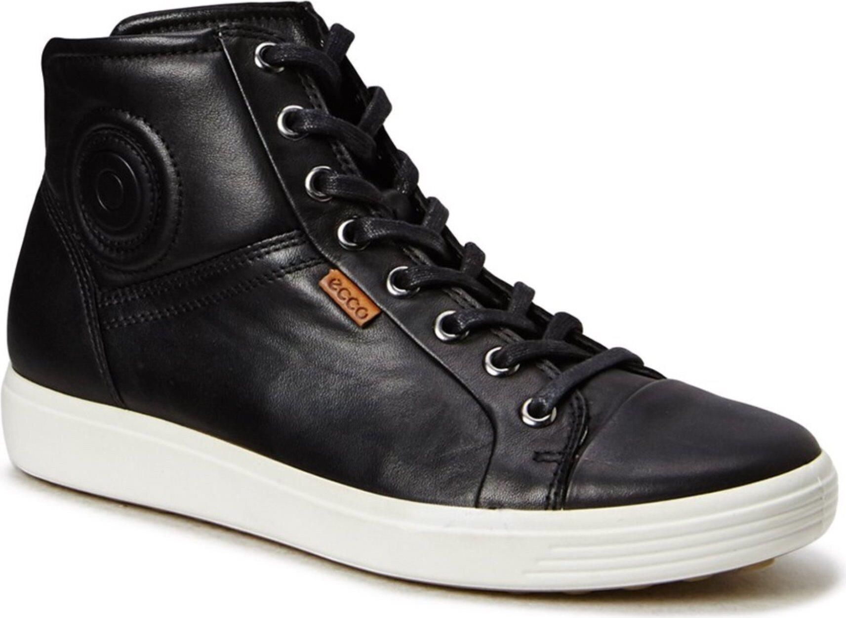 "Wysokie sznurowane buty o sportowym designie" Optymalne wsparcie dzięki wysokiemu sznurowaniuModna, biała podeszwaMateriał wierzchni: gładka skóra Fason: za kostkę. Kolor: Czarne. Materiał cholewki: nie określono. Przeznaczenie: uniwersalne. Rodzaj: Damskie. Sezon: na cały rok. Typ zapięcia: sznurówki. Opis: Marka: Ecco | Nr modelu.: 43002301001 | nazwa modelu: SOFT 7 LADIES - mid cut lace | typ: damskie buty za kostkę - sportowe buty za kostkę, buty sneaker o średnim kroju | kolor: czarny + biały (czarny) | cholewka: skóra naturalna - skóra gładka (skóra bydlęca - miękka i elastyczna) | podszewka: Prawdziwa skóra i siateczka/tekstylia | Wkładka: Prawdziwa skórzana wkładka | Wyjmowana wkładka: Wyjmowana wkładka | Podeszwa zewnętrzna: Gumowa podeszwa | Zapięcie: 8 sznurowadeł | Obcas: Płaski - bez pięty | Wysokość cholewki: Do kostki, ok. 13 cm | Kształt buta: okrągły | Rozmiar: normalny | Szerokość: G - normalna szerokość | Piękne damskie buty za kostkę od Ecco wykonane z delikatnej, wysokiej jakości skóry nubukowej. Wnętrze buta wykonano z garbowanej bezchromowo skóry. Buty mają normalną szerokość. Obcas jest płaski na całej długości. Podeszwa zewnętrzna jest wykonana z gumy. Produkt ma zapięcie na sznurowadła. Szerokość cholewki jest normalna (cholewka M). Rozmiar buta jest normalny. Trenerzy Soft 7 Ladi firmy ECCO to modne buty na co dzień w kolorze czarnym. Materiał wewnętrzny wykonany jest z materiału tekstylnego, a cholewka z wysokiej jakości skóry naturalnej. But ma wyjmowaną wkładkę, która pozwala na dostosowanie komfortu. Tekstylna podeszwa zapewnia dodatkowy komfort. Te buty sportowe są idealne do noszenia na co dzień i oferują stylową opcję do spędzania wolnego czasu. Ecco damskie sznurowane buty sportowe bez podszewki czarne Średniej wysokości, wygodne sznurowane buty damskie ECCO wykonane z gładkiej skóry. Dość lekkie i wysokiej jakości Ecco Soft 7 Mid Cut Ladies to wysoka wersja Ecco Soft, prawdopodobnie najbardziej znanego modelu, który Ecco wypuściło w swojej długiej historii. W Poczdamie jest on pieszczotliwie nazywany wyścigówką Sanssouci. Szerokie sznurowanie zapewnia dużo miejsca. W obszarze piłki jest wystarczająco dużo miejsca dla stóp z problemami, a Ecco Soft VII są po prostu świetne do noszenia dzięki lekkiej i elastycznej podeszwie.