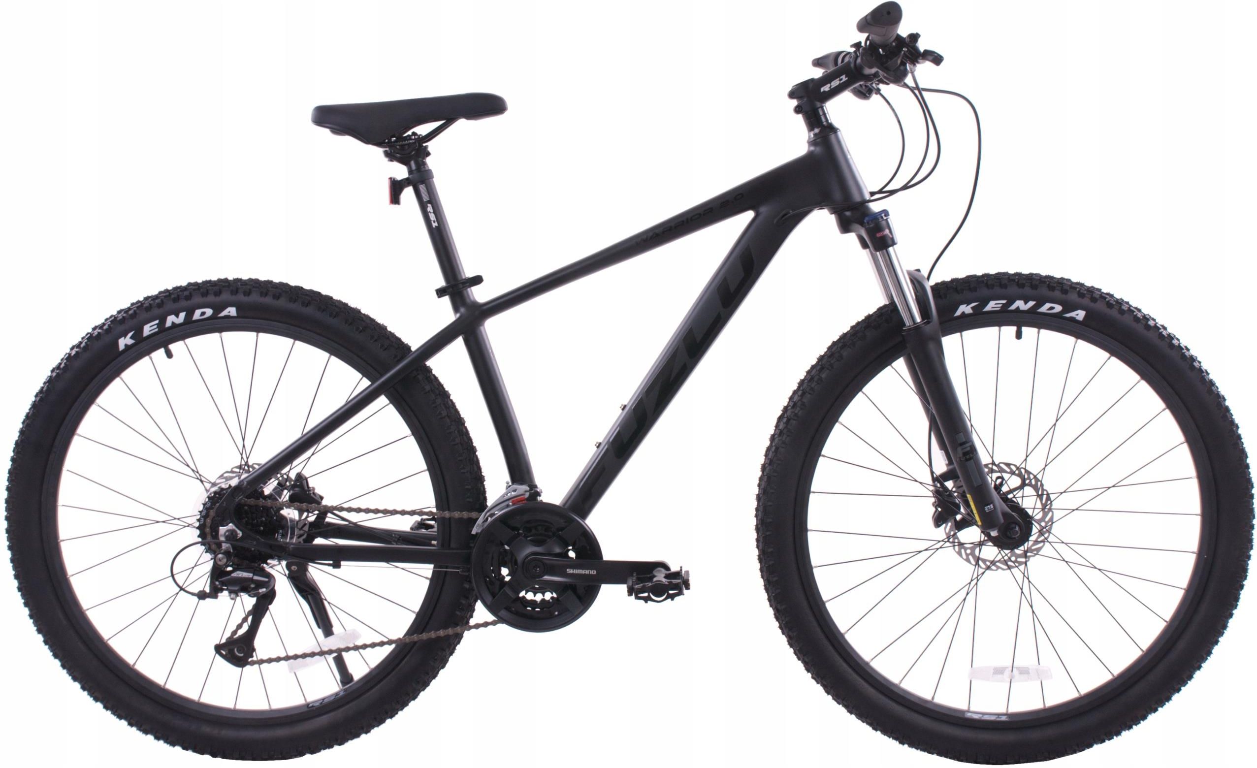 Rower górski Fuzlu Warrior 2.0 27,5” 16" Szukasz roweru, który poradzi sobie w lesie, na górskim szlaku i na codziennych trasach? Ten model to strzał w dziesiątkę! Lekka, aluminiowa rama i amortyzator z blokadą sprawiają, że jazda jest wygodna nawet po wybojach. Napęd Shimano z 24 przełożeniami daje spory zakres do pokonywania podjazdów i rozwijania prędkości na zjazdach. Hydrauliczne hamulce tarczowe zadbają o pewne hamowanie w każdej sytuacji. Koła 27,5" z oponami Kenda dobrze trzymają się podłoża, a wygodne siodło, ergonomiczne chwyty i solidne pedały sprawiają, że nawet dłuższe wypady to czysta przyjemność. Do tego dzwonek, podpórka i odblaski – czyli wszystko, czego potrzeba, żeby od razu ruszyć w trasę. SPECYFIKACJA RAMA Alu 6061 hydroformowana WIDELEC SR Suntour XCE-P z blokadą PRZEDNIA PRZERZUTKA Shimano Tourney TY300 TYLNA PRZERZUTKA Shimano Acera RD-M3020 PRZEDNIA MANETKA Shimano SL-M315 3 biegi TYLNA MANETKA Shimano SL-M315 8 biegów DŹWIGNIA HAMULCA aluminium MECHANIZM KORBOWY Shimano FCTY-301 42/34/24T 170 mm z osłoną WOLNOBIEG/KASETA Shimano CS-HG200-8; 12-32T ILOŚĆ BIEGÓW 24 ŁAŃCUCH KMC PRZEDNI HAMULEC Shimano MT-200 hydrauliczny TYLNY HAMULEC Shimano MT-200 hydrauliczny ROZMIAR KOŁA 29 OPONY 27,5×2,25 KENDA PRZEDNIA PIASTA aluminium QR TYLNA PIASTA aluminium QR KIEROWNICA aluminium 680 mm 15' MOSTEK RS1 aluminium 90 mm SZTYCA RS1 aluminium 31,6 mm 350 mm SIODEŁKO Fuzlu PEDAŁY aluminium OBRĘCZE czarne stożkowe aluminium AKCESORIA dzwonek, odblaski, podpórka CHWYTY ergonomiczne LINKI Jagwire
