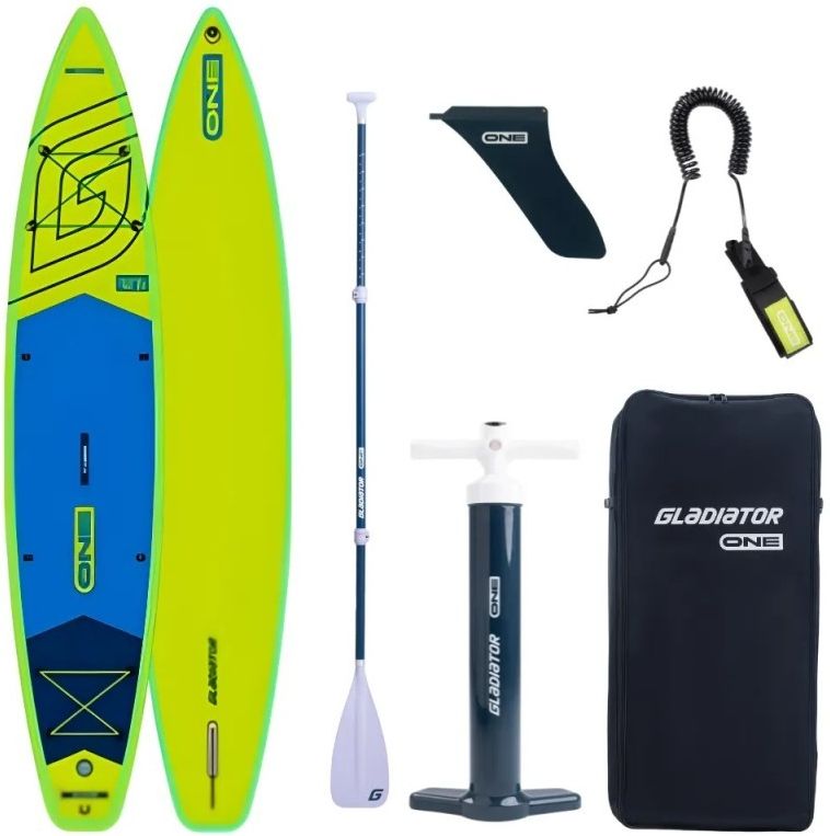 Deska SUP Gladiator ONE 12'6 Lime - Super kształt i osiągi w ekstra cenie Nowa w sezonie 2026 seria Gladiator ONE to solidna, ekonomiczna deska SUP w przystępnej cenie, Wykonana w technologii SINGLE LAYER FUSION z rdzeniem Drop-Stitch, która zapewnia sztywność, lekkość i trwałość. Model ONE 12'6, wąski touring, osiąga szybkie tempo przy dobrej zwrotności, dlatego zalecany jest dla osób początkujących i średniozaawansowanych. Dzięki odpowiedniej długości i i szerokości przeznaczony dla cięższych osób o wadze do 150 kg. W zestawie znajduje się wiosło, plecak, leash, statecznik oraz zestaw naprawczy, co pozwala na natychmiastowy start na wodzie. Deska SUP Gladiator ONE 12'6 Lime - najważniejsze parametry techniczne Długość: 12'6"- 381 cm Szerokość: 32" - 81 cm Grubość: 6" - 15 cm Waga deski: 11 kg Wyporność: 350 l Maksymalna waga użytkownika: do 150 kg Maksymalne ciśnienie: 15 PSI Możliwość zamontowania siedziska: Tak Więcej w zakładce "Parametry" Deska SUP Gladiator ONE 12'6 Lime - cechy deski Gladiator ONE – pompowana deska SUP stworzona z myślą o komforcie, stabilności i czystej przyjemności z pływania. Antypoślizgowa mata EVA to maksymalna stabilność i pewność podczas pływania. Przemyślana podwójna strefa transportowa z elastycznymi linkami bagażowymi bungee na dziobie i rufie. Opcja kajakowa z czterema d-ringami do montażu siedziska. Wygodne przenoszenie, holowanie i wodowanie dzięki trzem solidnym uchwytom. Bezpieczeństwo z tylnym d-ringiem do przypięcia leasha. Stabilny kurs zapewniony skrzynkę statecznikową typu US-Box Deska SUP Gladiator ONE 12'6 Lime - akcesoria w zestawie 1. Zestaw podstawowy Wiosło 3-częściowe – lekkie i wytrzymałe, z trzonkiem z włókna szklanego oraz piórem z nylonu, które zapewniają doskonałą kontrolę i efektywność każdego pociągnięcia. Plecak transportowy – lekki, pojemny i wygodny, pomieści cały niezbędny sprzęt. Idealny w podróży – zabierz swoją deskę wszędzie tam, gdzie czeka przygoda. Pompka Bravo Double Action – dwufazowy system pompowania sprawia, że przygotowanie deski do pływania jest szybkie, łatwe i bez wysiłku. Coil Leash – sprężynowa smycz bezpieczeństwa, która nie plącze się i gwarantuje, że Twoja deska zawsze pozostanie blisko Ciebie, nawet po upadku do wody. Statecznik 8" US Box – wytrzymały i prosty w montażu na śrubkę, zapewnia doskonałą stabilność oraz precyzyjne prowadzenie deski. Zestaw naprawczy – zapakowany w praktyczną tubę, pozwala szybko poradzić sobie z drobnymi uszkodzeniami i wrócić na wodę bez przestojów. 2. Zestaw z wiosłem 2 w 1 Wszystkie akcesoria z zestawu podstawowego tj. wiosło, plecak, pompka, leash, statecznik, zestaw naprawczy Dodatkowe pióro, które ze standardowego wiosła SUP tworzy kajakowe 2 w 1, dzięki temu wygodnie pływa się na siedząco 3. Zestaw kajakowy combo Akcesoria z zestawu z wiosłem 2 w 1 uzupełnione o siedzisko kajakowe Gladiator mocowane do d-ringów za pomocą regulowanych pasów 4. Zestaw podstawowy z pompką elektryczną Wszystkie akcesoria z zestawu podstawowego tj. wiosło, plecak, pompka, leash, statecznik, zestaw naprawczy Pompka elektryczna PBG6 zasilana z gniazda samochodowego 12V, która zapewnia szybkie napompowanie deski do maksymalnego ciśnienia 16 PSI 5. Zestaw MAXI Wszystkie elementy z zestawu kajakowego combo czyli: wiosło, dodatkowe pióro do wiosła 2 w 1 kajakowego, siedzisko kajakowe, plecak, pompka, leash, statecznik, zestaw naprawczy Pompka elektryczna PBG6 zasilana z gniazda samochodowego 12V, która zapewnia szybkie napompowanie deski do maksymalnego ciśnienia 16 PSI