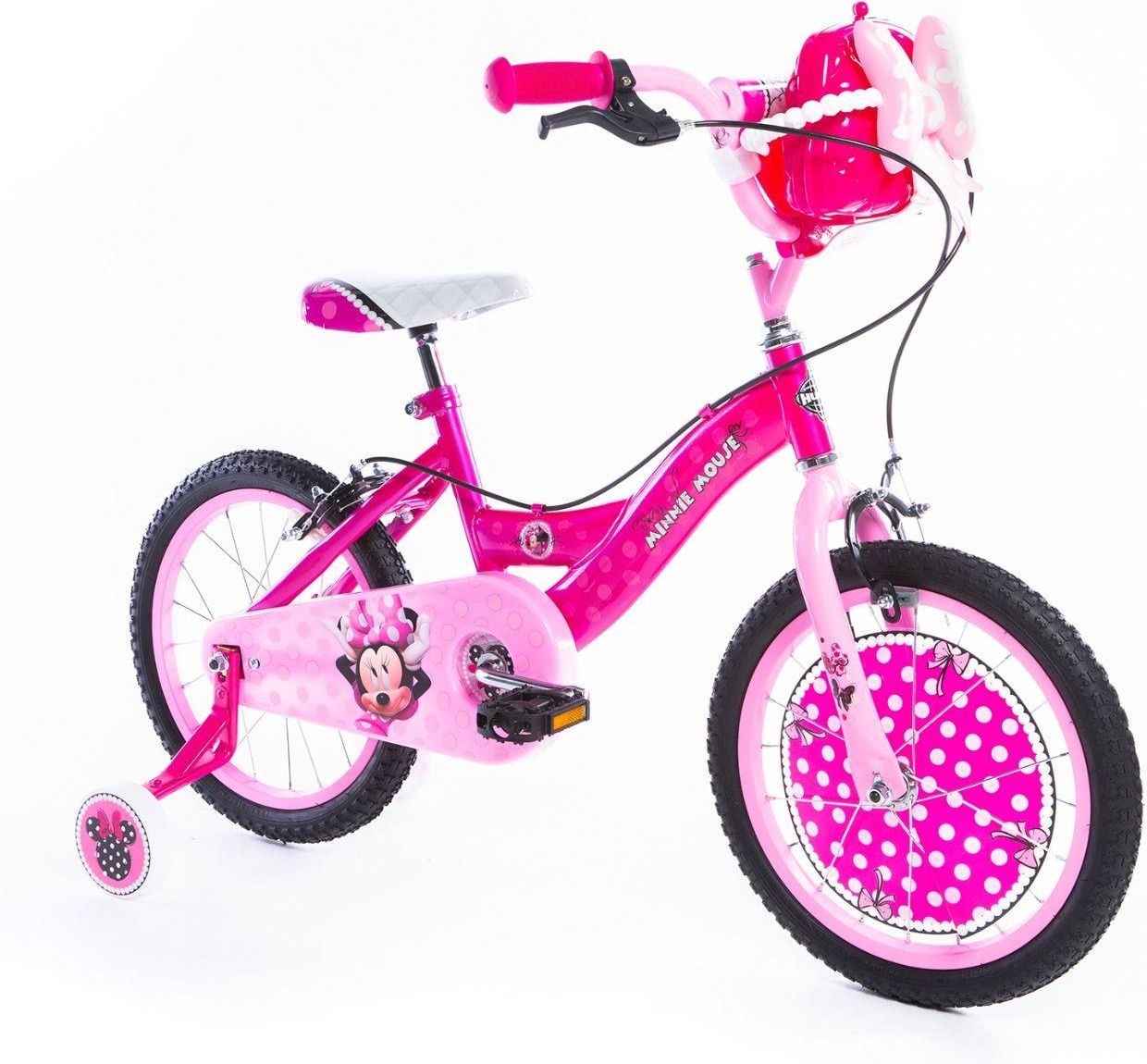 Rower dziecięcy Huffy Minnie, 16" Superzabawne przygody na chodniku zaczynają się od tego 16-calowego roweru Disney Minnie! Stalowa rama z grafiką Disneya Minnie Kosz na kierownicę jest gotowy do przechowywania zabawek (zabawki nie wchodzą w skład zestawu) Szczegóły, takie jak szerokie opony i wygodne chwyty, sprawiają, że ich pierwsza przejażdżka to prawdziwa frajda Szybkie zwalnianie siedziska ze stopu doskonale nadaje się do szybkiej i dokładnej regulacji wysokości Łatwe w użyciu hamulce szczękowe z przodu iz tyłu Szerokie koła treningowe zapewniają stabilność Aluminiowa sztyca z szybkim zwalnianiem umożliwia łatwą regulację wysokości