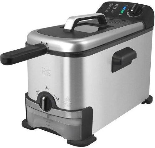FRYTKOWNICA 3L Z FILTRACJĄ OLEJU I REGULOWANYM TERMOSTATEM Poznaj frytkownicę, która przeniesie Twoje kulinarne doświadczenia na wyższy poziom! Nasza frytkownica o pojemności 3 litrów to idealne rozwiązanie dla rodzin, miłośników domowych posiłków, a nawet dla małych gastronomii. Pojemność 3 litry - Idealna do przygotowywania dużych porcji dla całej rodziny lub do użytku w małej gastronomii, zapewniając wystarczającą ilość jedzenia na każdą okazję. System filtracji oleju - Innowacyjny system automatycznej filtracji pozwala na wielokrotne używanie oleju, co jest zarówno bardziej ekonomiczne, jak i higieniczne. Regulowany termostat - Umożliwia precyzyjne ustawienie temperatury, co zapewnia doskonałe rezultaty smażenia dla różnych potraw. Łatwe czyszczenie - Zdejmowany pojemnik i stalowa konstrukcja sprawiają, że czyszczenie frytkownicy jest szybkie i proste, oszczędzając Twój czas i wysiłek. Ciesz się smakiem, zachowując higienę Dzięki innowacyjnemu systemowi filtracji oleju, Twoje dania będą zawsze pyszne i zdrowe. Po smażeniu olej jest automatycznie filtrowany i przechowywany w wygodnym, wyjmowanym pojemniku. Wystarczy schować go w lodówce, by móc użyć ponownie – bez bałaganu i marnowania! Kontrola, wygoda i bezpieczeństwo Nasza frytkownica została zaprojektowana z myślą o Twoim komforcie. Pokrywka z okienkiem i wymiennym filtrem minimalizuje nieprzyjemne zapachy i zapobiega rozpryskiwaniu oleju, a regulowany termostat pozwala idealnie dopasować temperaturę do każdego rodzaju potraw. Wszystko to zamknięte w eleganckiej, stalowej obudowie, która doda nowoczesności każdej kuchni. Łatwe czyszczenie, oszczędność czasu Zdejmowany pojemnik i kosz wykonane ze stali nierdzewnej sprawiają, że czyszczenie frytkownicy jest szybkie i proste. Oszczędzaj czas i ciesz się chrupiącymi przekąskami bez zbędnego wysiłku! Moc i efektywność Z mocą 2000 W, frytkownica szybko osiąga optymalną temperaturę, dzięki czemu przygotujesz pyszne, złociste frytki, chrupiące kurczaki czy inne przysmaki w mgnieniu oka. Specyfikacja techniczna Pojemność: 3L Materiał: Stal nierdzewna Moc: 2000W Zasilanie: 230V (kabel zasilający z wtyczką angielską i adapterem na rynek europejski) Długość kabla zasilającego: System filtracji oleju: tak Wymienny filtr: tak Regulowany termostat Lampka kontrolna Wymiary: 62 x 26 x 33 cm Waga: 5,2 kg
