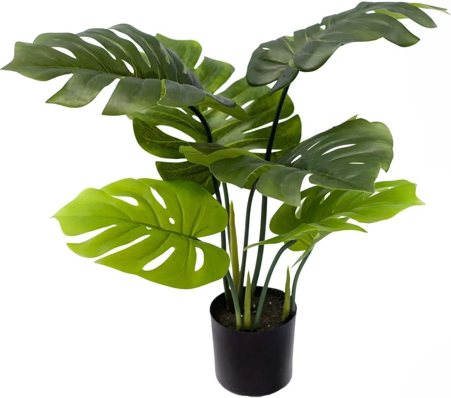 Monstera sztuczna Sztuczna roślina w doniczce to doskonała alternatywa dla osób, które pragną cieszyć się zielenią w swoim wnętrzu, ale nie mają czasu lub warunków, aby pielęgnować żywe rośliny. Wykonana z najwyższej jakości materiałów, została starannie zaprojektowana, aby maksymalnie odwzorować naturalny wygląd rośliny żywej. Dzięki szczegółowemu odwzorowaniu tekstur liści, łodyg i innych detali, sztuczna roślina zachwyca autentycznością i perfekcyjnym wykonaniem. Jej obecność w pomieszczeniu wprowadza ciepło i przytulność, jak w przypadku prawdziwego, żywego kwiatka. Sztuczne rośliny są idealnym rozwiązaniem w miejscach, gdzie rośliny żywe nie mają odpowiednich warunków do wzrostu. W biurach, pomieszczeniach bez dostępu do naturalnego światła, a także w przestrzeniach o zmiennych temperaturach, sztuczna roślina staje się doskonałym wyborem, który doda zieleni i ożywi każdą przestrzeń. To także świetne rozwiązanie dla osób zapracowanych, które nie mają czasu na regularną pielęgnację roślin, takich jak podlewanie, przycinanie czy przesadzanie. Dzięki sztucznym roślinom można cieszyć się ich pięknem przez długi czas bez potrzeby angażowania się w codzienną opiekę. Sztuczne rośliny pasują do każdego wnętrza - od nowoczesnych apartamentów po klasyczne, rustykalne przestrzenie. Ich uniwersalność sprawia, że stanowią świetny element dekoracyjny zarówno w salonach, biurach, jak i kuchniach czy sypialniach. Doskonale komponują się z różnymi stylami - od minimalistycznych aranżacji, przez industrialne przestrzenie, aż po bogato zdobione wnętrza w stylu vintage. Dzięki swojej różnorodności, sztuczne rośliny w doniczkach potrafią wkomponować się w każde otoczenie, nadając mu niepowtarzalnego charakteru. Pielęgnacja takiej rośliny jest niezwykle prosta i nie wymaga zaawansowanej troski. Wystarczy od czasu do czasu przetrzeć liście wilgotną ściereczką, aby usunąć z nich kurz i zachować ich estetyczny wygląd. To proste rozwiązanie sprawia, że sztuczna roślina może długo cieszyć oko, zachowując swoje pierwotne piękno i wygląd. Wybierając sztuczną roślinę w doniczce, inwestujesz w wygodę, estetykę i trwałość, które pozwolą Ci wprowadzić odrobinę natury do każdego wnętrza, bez konieczności dbania o skomplikowaną pielęgnację. To idealna opcja dla osób ceniących prostotę, piękno i praktyczność w dekorowaniu przestrzeni.