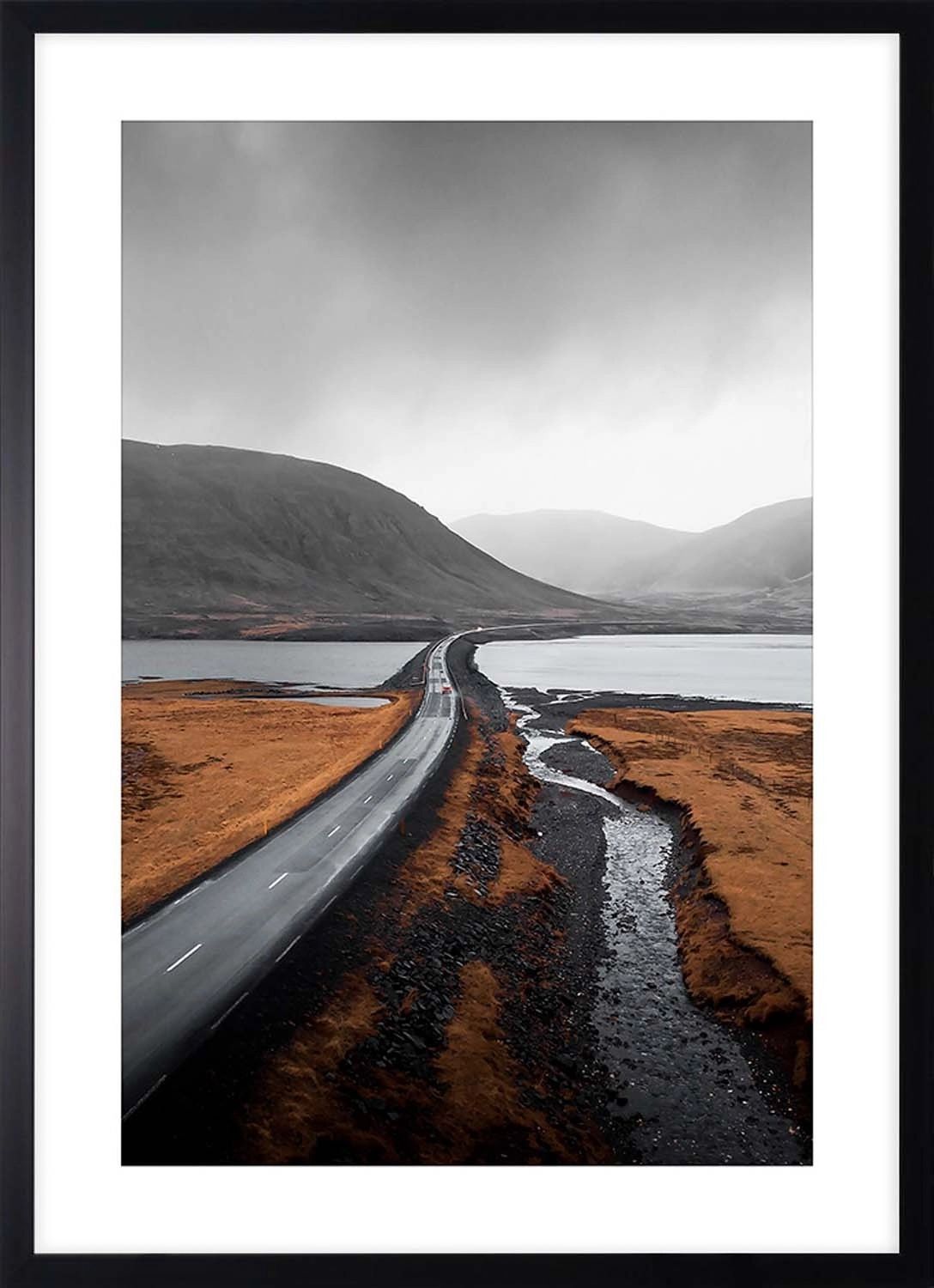 ARS LONGA Obraz ROAD OVER THE WATER 53 x 73 cm Obraz w eleganckiej ramie to wyjątkowy akcent, który wprowadzi do wnętrza szyk, styl i niepowtarzalny charakter. Subtelne wzornictwo w połączeniu z wysoką jakością wykonania sprawia, że stanie się nie tylko ozdobą, ale także elementem nadającym przestrzeni indywidualny klimat. Bogactwo wzorów do różnorodnych aranżacji wnętrz Kolekcje od marki Ars Longa oferują efektowne wzory, różnorodną kolorystykę i swobodę wyboru, przez co bez trudu dopasujesz elegancką ozdobę do charakteru swojego wnętrza. Dekorację można z łatwością zawiesić na ścianie lub ustawić na półce, komodzie czy konsoli - w każdej z tych opcji prezentuje się stylowo i przyciąga wzrok. To idealny wybór dla osób ceniących estetykę, dbałość o detale i ponadczasowe dodatki, które dopełniają wystrój wnętrza. Wzbogać swoje wnętrze eleganckimi dodatkami Stylowy obraz w ramie doskonale sprawdzi się w sypialni, salonie, przedpokoju czy biurze - w każdym z tych miejsc wprowadzi przyjemną atmosferę i stanie się efektownym punktem aranżacji. Dzięki uniwersalnej formie obraz dekoracyjny harmonijnie wpisze się zarówno w nowoczesne, minimalistyczne wnętrza, jak i w bardziej klasyczne przestrzenie, dodając im przytulności i wyrafinowania. Najwyższa jakość wykonania Produkt wykonany z najwyższej jakości materiałów gwarantuje trwałość oraz odporność na blaknięcie kolorów. Precyzyjny druk i staranne wykończenie zapewniają perfekcyjny wygląd przez długi czas. Reprodukcja wykonana została w technologii druku ekosolwentowego, z wykorzystaniem trwałych, ekologicznych tuszy. Powierzchnia obrazu pokryta jest matowym laminatem, który zabezpiecza kolory przed blaknięciem i chroni przed uszkodzeniami mechanicznymi. Wydruk osadzony jest na płycie HDF o grubości 3 mm, co gwarantuje sztywność i estetyczne wykończenie. Całość oprawiona została w ramę z polistyrenu - lekkiego, a zarazem wytrzymałego tworzywa sztucznego, w 100% nadającego się do recyklingu.