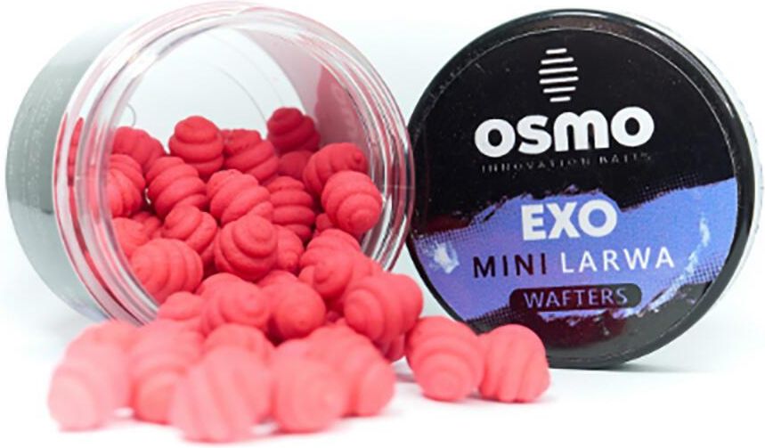 OSMO Mini Larwa Wafters to innowacyjne przynęty charakteryzują się wyjątkowym kształtem oraz małym 7mm rozmiarem. EXO to mieszanka słodkich, egzotycznych zapachów w kolorze różowym. Połączenie słodkich owoców powoduję iż exo jest przynęta znakomitą na początek sezonu oraz na łowiska gdzie sprawdzają się owocowe nuty. Jak wszystkie mają sporą wyporność jak na waftersy, haki które je balansują (ważne: balansujemy larwy hakami nie bagnetami) to rozmiary 8, 10, 12. Wyporność to dla OSMO bardzo ważna sprawa i tym wyróżniamy się na rynku przynęt, uważamy że w naszych wodach, gdzie karpie dorastają do sporych rozmiarów, stosowanie odpowiednio dużych haków to podstawa. Dlatego nasze larwy w kombinacji z hakami o odpowiednich rozmiarach z łatwością wpływają do karpich paszcz, jak baloniki.