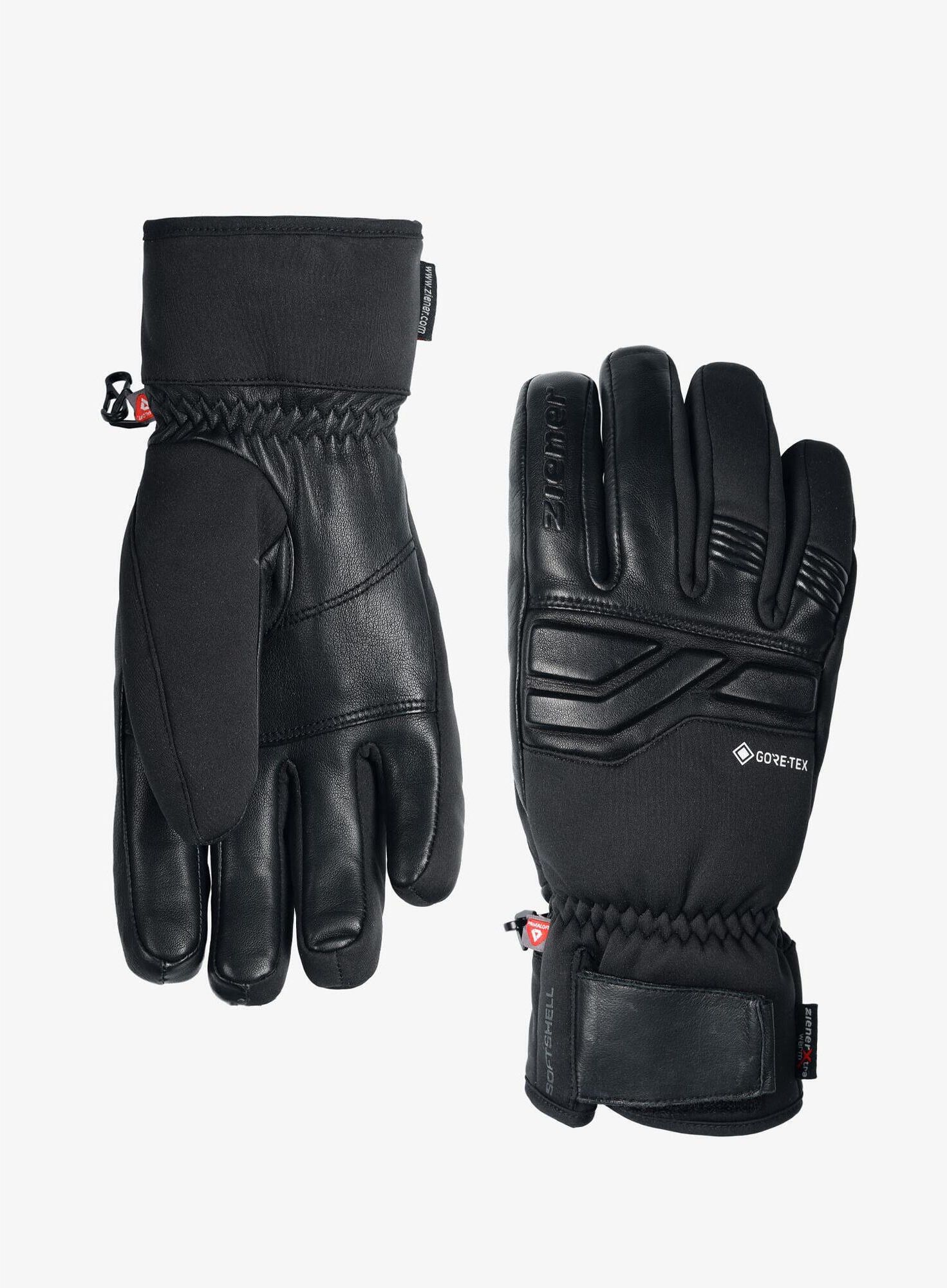 Rękawice narciarskie Ziener Gin GTX PR - black to model, który zapewni dłoniom ciepło i ochronę przed czynnikami zewnętrznymi. Rękawiczki wykorzystują zalety syntetycznej ociepliny PrimaLoft® oraz właściwości membrany GORE-TEX®. Marka Ziener to niemiecki producent, który wprowadza cele zrównoważonego rozwoju do swoich projektów, a także dba o poszanowanie naszej planety. Dlatego ocieplany model Ziener Gin GTX PR - black został częściowo wykonany z materiałów z recyklingu. Rękawice narciarskie Ziener Gin GTX PR - black to model wykonany z wykorzystaniem membrany GORE-TEX®. Zapewnia ona właściwości wodoodporne i sprawnie odprowadza wilgoć z wnętrza modelu. Posiada ona także właściwości wiatroodporne, które docenią użytkownicy podczas wietrznych dni na stokach. Syntetyczne ocieplenie PrimaLoft® zapewnia wysoki komfort termiczny. Ocieplina spełnia swoje zadanie nawet gdy jest lekko zawilgocona. PrimaLoft® to lekka i szybkoschnąca izolacja, która posiada dobrą oddychalność. Część chwytna rękawic została wykonana ze skóry, aby zapewnić pewny chwyt kijów narciarskich. Rękawice ocieplane Ziener Gin GTX PR - black to wytrzymały model, który posiada krótkie mankiety regulowane za pomocą rzepów. Są rozciągliwe w czterech kierunkach i pozwalają na sprawne manipulacje przy sprzęcie, bez konieczności ich ściągania w mroźnych warunkach. Rękawice Ziener Gin GTX PR - black - najważniejsze cechy:Model zaprojektowany z myślą o stokach narciarskich;Membrana GORE-TEX® zapewnia wydajną oddychalność oraz właściwości wodoodporne;GORE-TEX® to także podstawowa ochrona przed wiatrem;Ocieplina PrimaLoft® izoluje przed zimnem, a także sprawnie odprowadza wilgoć;PrimaLoft® zachowuje swoje właściwości nawet gdy jest lekko wilgotna;Część chwytna rękawic wykonana ze skóry;Materiał rozciągliwy w czterech kierunkach;Możliwość spięcia razem;Miły w dotyku materiał wewnątrz;Materiały pochodzą z recyklingu.