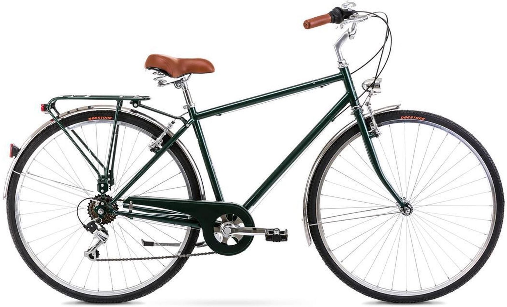 Romet Rower Miejski Vintage Eco M 2025 Romet Rower Miejski Vintage Eco M 2025 to idealny wybór dla osób, które pragną połączyć wygodę, zdrowie i ekologię w codziennym poruszaniu się po mieście. Ten model łączy w sobie ponadczasowe wzornictwo z nowoczesnymi rozwiązaniami technologicznymi, co sprawia, że jest nie tylko funkcjonalny, ale także estetyczny. Dzięki uniwersalnemu zastosowaniu, rower ten doskonale sprawdzi się zarówno podczas codziennych dojazdów do pracy, jak i relaksujących weekendowych wypraw. Typ i przeznaczenie roweru Rower miejski Vintage Eco M został zaprojektowany z myślą o użytkownikach ceniących sobie styl oraz wygodę. Jego zielony kolor przyciąga wzrok i doskonale wpisuje się w różne miejskie scenerie. Wysokiej jakości materiały oraz staranne wykonanie sprawiają, że jest to pojazd, który sprosta różnym wyzwaniom, zarówno w codziennym użytkowaniu, jak i podczas weekendowych wyjazdów. Amortyzacja i komfort jazdy Model ten został stworzony z dbałością o komfort użytkownika. Choć nie jest wyposażony w system pełnej amortyzacji, to konstrukcja ramy oraz odpowiednio dobrane komponenty zapewniają wystarczający komfort jazdy na miejskich nawierzchniach. Dzięki precyzyjnemu wyważeniu i stabilności, jazda po nierównościach czy drobnych przeszkodach nie stanowi problemu, co pozwala na swobodne poruszanie się po różnych warunkach terenowych. Specyfikacje techniczne Jednym z kluczowych atutów tego modelu jest jego zaawansowany, 6-biegowy napęd Shimano, co sprawia, że jazda jest niezwykle płynna, a reakcja na zmiany terenu błyskawiczna. Pojazd waży zaledwie 12 kg, co czyni go idealnym rozwiązaniem dla osób planujących codzienne użytkowanie oraz transportowanie roweru. Warto zwrócić uwagę na następujące parametry techniczne: Ilość biegów: 6 biegów dla różnorodnych warunków jazdy, Materiał ramy: stal, co gwarantuje trwałość i wytrzymałość, Rozmiar ramy: dostosowany do wygody użytkowników o różnych wzrostach, Kolor: zielony, klasyczny i stylowy. System hamulcowy Bezpieczeństwo jazdy to priorytet każdego rowerzysty. Rower miejski Vintage Eco M wyposażony jest w solidny system hamulcowy, który gwarantuje efektywne zatrzymywanie się w różnorodnych warunkach, zarówno w mieście, jak i na mniej utwardzonych drogach. Dzięki hydraulicznym hamulcom tarczowym, użytkownik może cieszyć się bezpieczną i stabilną jazdą, niezależnie od warunków atmosferycznych. Waga i mobilność Jednym z kluczowych aspektów, na które zwracają uwagę przyszli właściciele rowerów, jest ich waga. Ten rower waży jedynie 12 kg, co czyni go idealnym rozwiązaniem dla osób planujących codzienne użytkowanie oraz transportowanie roweru. Dzięki swojej mobilności i niewielkiej wadze, z łatwością można go przenosić czy wprowadzać do mieszkania, co czyni go wygodnym wyborem dla miejskich cyklistów. Typ siodła i komfort użytkowania Ważnym elementem, który wpływa na komfort jazdy, jest typ siodła. Rower ten wyposażony jest w ergonomiczne siodło, które zapewnia wygodę podczas dłuższych tras. Jego kształt oraz wypełnienie sprawiają, że użytkownik może cieszyć się komfortem jazdy, niezależnie od dystansu. Dobrze zaprojektowane siodło jest niezbędne, aby uniknąć dyskomfortu podczas codziennych przejażdżek. Wyposażenie i akcesoria Vintage Eco M to nie tylko elegancki design, ale także praktyczne dodatki, które zwiększają jego funkcjonalność. W standardzie znajdziesz: Bagażnik: idealny do transportu zakupów czy innych niezbędnych rzeczy, co znacznie zwiększa funkcjonalność roweru, Błotniki: chronią odzież przed błotem i wodą, co jest szczególnie ważne w deszczowe dni, a ich obecność zwiększa komfort użytkowania, Oświetlenie LED: zwiększa widoczność na drodze, co jest kluczowe dla bezpieczeństwa, Osłona na łańcuch: zapewnia ochronę przed zabrudzeniem oraz zwiększa trwałość napędu, Stopka: umożliwia stabilne ustawienie roweru, gdy nie jest w użyciu, Brak koszyka: rower nie jest wyposażony w koszyk, co może być istotne dla niektórych użytkowników. Producenci Romet znani są z wysokiej jakości swoich produktów oraz dbałości o detale, co czyni ten model nie tylko funkcjonalnym, ale także estetycznym wyborem. Rower miejski Vintage Eco M to idealny towarzysz w miejskiej dżungli, który sprosta codziennym wyzwaniom i stanie się przyjaznym środowisku rozwiązaniem w Twoim życiu.