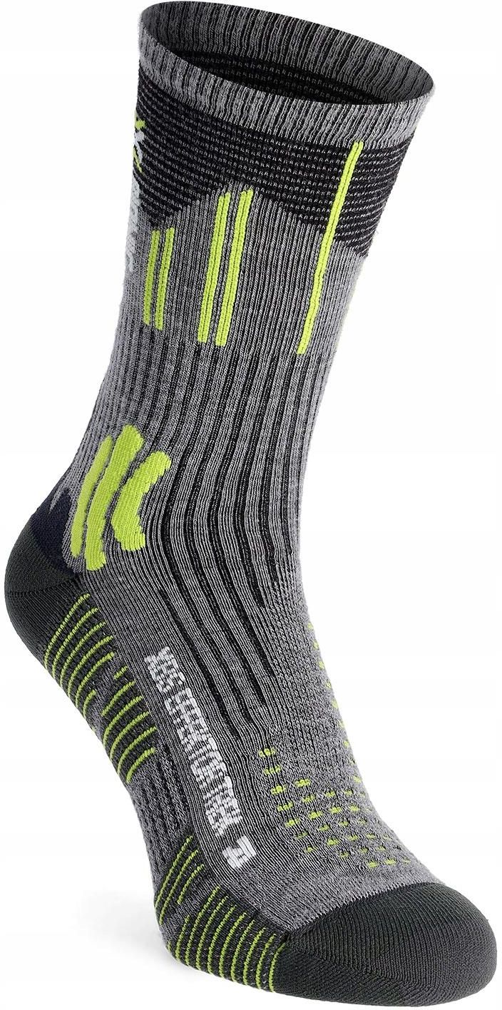 X-Socks Skarpety trekkingowe X-Socks Effektor Trekking - grey melange/effektor green 35-38 Skarpety trekkingowe X-Socks Effektor Trekking - grey melange/effektor green to zaawansowana propozycja dla miłośników ruchu. Marce zależało na tym, żeby zaproponować jak najlepsze parametry w zakresie wentylacji, swobody ruchów oraz trwałości. To nie przypadek, że konstrukcja w dużej mierze została wykonana z poliamidu. To włókno cechujące się sporą wytrzymałością. Wszystko po to, aby skarpety X-Socks Effektor Trekking - grey melange/effektor green wspierały Cię także w trudnych warunkach. Skarpety trekkingowe X-Socks Effektor Trekking - grey melange/effektor green wykorzystują kanały wentylacyjne AirConditioning Channel®. Dzięki temu ograniczone zostanie przegrzewanie w newralgicznych miejscach stopy. Obszar ścięgna Achillesa został uzupełniony o dodatkową amortyzację Lambertz-Nicholson Achilles Tendon Protector. Wykorzystanie wełny merino wpłynie na dłuższe zachowanie świeżości. Skarpety X-Socks Effektor Trekking - grey melange/effektor green - najważniejsze cechy Zwiększona wytrzymałość dzięki wykorzystaniu poliamidu; Przyjazność dla skóry; Kanały wentylacyjne AirConditioning Channel® ograniczające przegrzewanie; Ochraniacz Lambertz-Nicholson Achillessehnen Protektor wspierający ścięgno Achillesa; Rozwiązanie Suppronation Bandage® wspierające ścięgna i mięśnie; Rozwiązanie Skin Nodor® zwiększające poziom ochrony przed przykrymi zapachami; Rozwiązanie Aktiv-Bund® wpływające na optymalne dopasowanie; Zdolność do absorbowania wstrząsów; Rozróżnienie skarpet dla jeszcze lepszego dopasowania do lewej i prawej stopy.