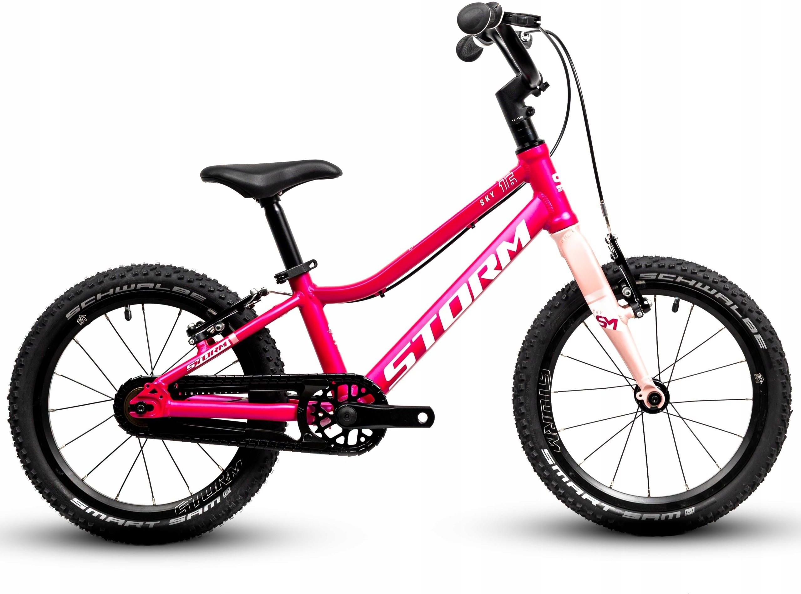 STORM SKY SUPER LIGHT 16 Kolor:ciemny róż Liczba biegów: 1 Kategoria: KIDS SPECYFIKACJA KASETA WOLNOBIEG WOLNOBIEG 1 RZĘDOWY - 18T KIEROWNICA ALUMINIOWA - 470 MM KORBA ALUMINIOWA 25T - 102 MM ŁANCUCH KMC + osłona łańcucha OBRĘCZ STORM ALUMINIOWA OPONA 16 x 1.50 SCHWALBE PEDAŁY FP-629 BLACK PIASTA PRZÓD ALUMINIOWA PIASTA TYŁ ALUMINIOWA SIODŁO STORM SUPORT CARTRIDGE / ŁOŻYSKA MASZYNOWE WSPORNIK SIODŁA ALUMINIOWY 27,2 MM WSPORNIK KIEROWNICY ALUMINIOWY AHEAD WIDELEC SZTYWNY ALUMINIOWY CHWYTY HERRMANS