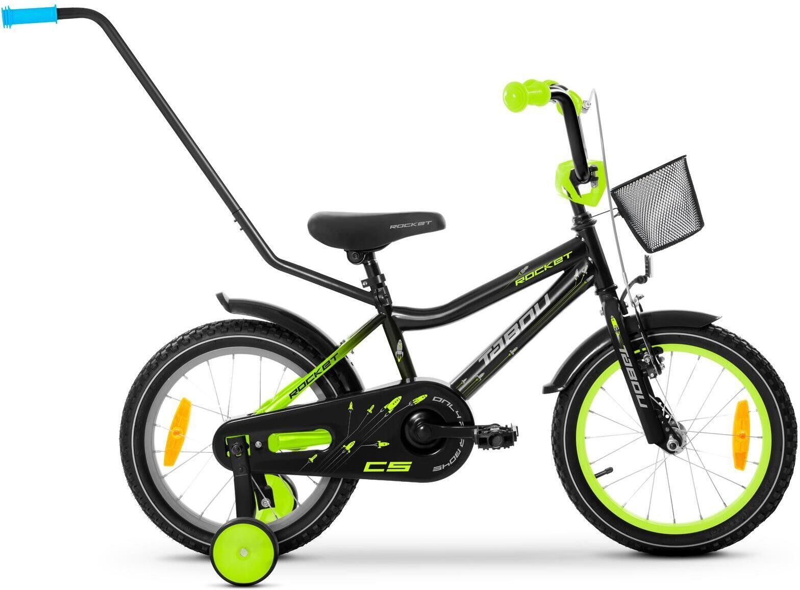 ROWEREK DZIECIĘCY 20 CALI TABOU ROWER DZIECIĘCY PROWADNIK I KOSZYK GRATIS TAB26-0780 CS TABOU to producent rowerów dla wszystkich grup wiekowych, zarówno dla początkujących, jak i zaawansowanych riderów. Design ram powstaje w studio projektowym w Polsce, bo ideą TABOU jest, że coś, co dobrze jeździ, musi też dobrze wyglądać. Kupując TABOU wspieracie polską markę, która aktywnie angażuje się w propagowanie zdrowego stylu życia. Rower dziecięcy TABOU ROCKET CS 20" cali czarno-limonkowy ROCKET CS to rowerek dla chłopców, uczących się samodzielnej jazdy na jednośladzie. Doskonały wybór po rowerku biegowym. Zaprojektowany i dostosowany w całości do potrzeb dziecka – od konstrukcji ramy, po wielkości i rodzaje komponentów. ROCKET CS to model występujący w rozmiarze kół: 12/14/16/18/20”, stąd możliwość doboru właściwego rowerka dla dzieci w wieku 2-8 lat. NAJWYŻSZEJ JAKOŚCI KOMPONENTY Zastosowany system hamulcowy: z przodu hamulec typu V-brake, a z tyłu klasyczny hamulec torpedo (aktywowany przez nacisk pedałów do tyłu). Taki zestaw zapewnia dziecku bezpieczne i pewne hamowanie w każdych warunkach – zarówno podczas spokojnej jazdy, jak i nagłego zatrzymania. Specyfikacja Rama: stalowa Obręcze kół: lakierowane 20 cali aluminiowe Opony: 20 cali pompowane Kierownica regulowana: wysokość oraz kąt nachylenia Środek suportu: CARTRIDGE Hamulec przód: V-BRAKE F Hamulec tył: TORPEDO Dźwignie hamulca: standardowa plastikowa Błotniki: bardzo mocne tworzywo, kolorowe Pedały: plastikowe z odblaskami Chwyty kierownicy: antypoślizgowe z antyuczuleniowego tworzywa Siodło: profilowane, eco skóra Odblaski: przód, tył, koła, pedała Długi Prowadnik do nauki jazdy Plastikowy pojemny koszyk Dzwonek zabawka Regulowane, demontowalne kółka boczne Liczba biegów: 1 Waga: 9,8 kg (bez kółek i prowadnika) Komfort i bezpieczeństwo DESIGNERSKA KIEROWNICA KOSZYK - mocny koszyk umożliwi transport np. zabawki Lekka stalowa rama z obniżoną górną rurą, ułatwia wsiadanie i zsiadanie z rowerka. Geometria ramy pozwala przyjąć dziecku wyprostowaną pozycję, zapewniając wygodę, ale także duże bezpieczeństwo, widzi ono bowiem doskonale drogę przed sobą. Najwyższa jakość każdego elementu PEŁNA OSŁONA ŁAŃCUCHA - zabezpiecza ewentualne wkręcenie czegokolwiek w układ napędowy łańcucha izębatki DŁUGI PROWADNIK - do nauki jazdy PEDAŁA - wykonane ze specjalnego plastiku z wypustkami pozwalają pewnie i bez poślizgu pedałować KÓŁKA BOCZNE - zabezpieczą dziecko przed upadkiem podczas nauki SIODEŁKO - specjalnie wyprofilowane z myślą o jak najwyższej wygodzie i komforcie jazdy Główne zalety: Rowerek wyposażyliśmy w akcesoria takie jak: Długi Prowadnik do nauki jazdy z możliwościa demontażu Plastikowy pojemny koszyk Dzwonek zabawka Regulowane z możliwościa demontażu kółka boczne Osłona łańcucha Dzięki tak bogatemu wyposażeniu rower jest bezpieczny, a także praktyczny. DOKŁADNE WYMIARY ROWERU A = 425 mm B = min. 61 cm, max. 76 cm C = min. 82 cm, max. 86 cm Jak dobrać rozmiar? Dobór odpowiedniego roweru dla dziecka jest bardzo ważny. Nie powinno się kupować większego roweru z nadzieją, że dziecko urośnie, ponieważ kontrola nad zbyt dużym rowerem będzie uciążliwa i niebezpieczna, należy pamiętać o tym aby pociecha swobodnie dotykała piętami podłoża podczas zsiadania z roweru. Pozycja łodego rowerzysty nie powinna być nadmiernie wychylona do przodu oraz powinien swobodnie sięgać do hamulców i skręcać bezpiecznie kierownicą. Rozmiar koła|Wiek dziecka|Wzrost dziecka|Wewnętrzna długość nogi - 12 cali | 2-4 lat | 80 - 108 cm | około 36 cm - 14 cali | 3-5 lat | 85 - 115 cm | około 41 cm - 16 cali | 4-6 lat | 95 - 122 cm | około 47 cm - 18 cali | 5-7 lat | 100 - 130 cm | około 51 cm - 20 cali | 6-8 lat | 110 - 140 cm | około 55 cm