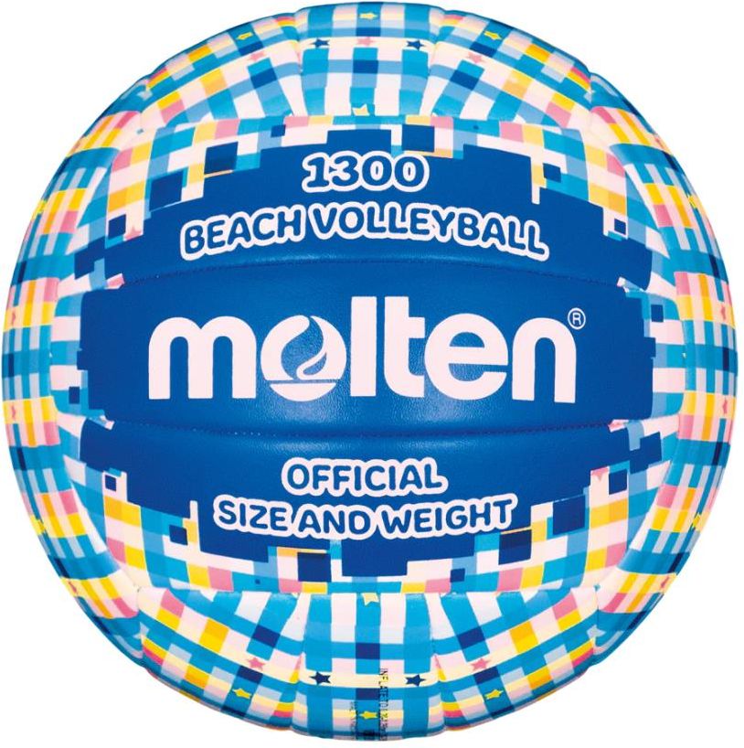 Molten V5B1300 - piłka do siatkówki plażowej. Rekreacyjna Miękka skóra syntetyczna Szyta maszynowo Kolor: niebieska w kratkę Rozmiar: 5