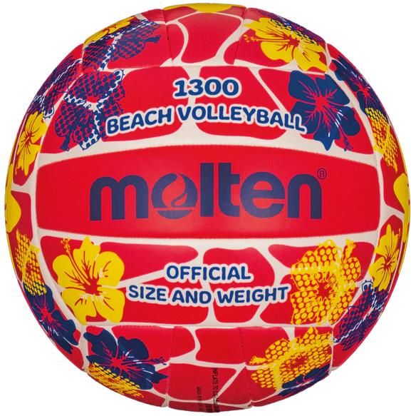 Molten V5B1300 - piłka do siatkówki plażowej. Rekreacyjna Miękka skóra syntetyczna Szyta maszynowo Kolor: kwiaty/czerwona Rozmiar: 5