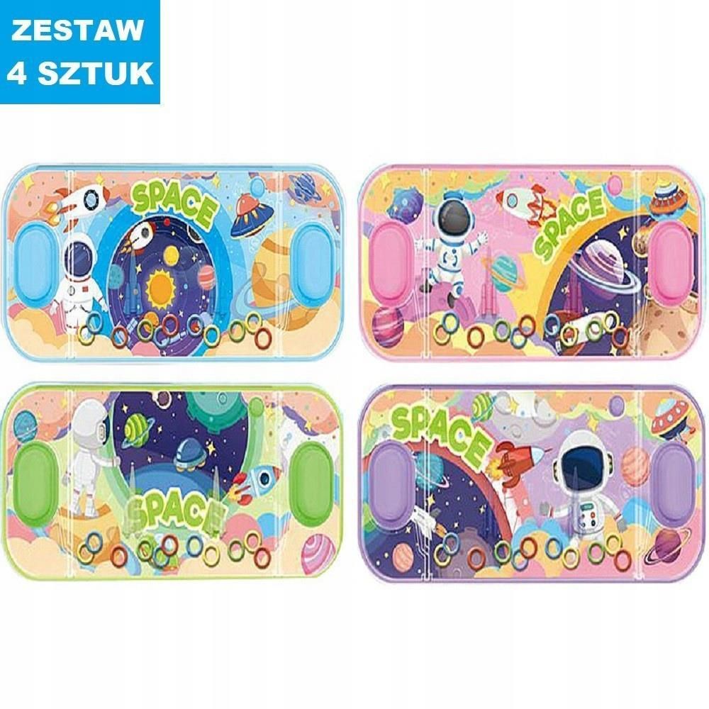 Klasyczna gra wodna w kształcie kwadratowej konsoli od firmy ADAR. Polega na umieszczaniu kolorowych krążków na specjalnych kołeczkach. Robimy to poprzez generowanie ruchów wody, która umieszczona jest w przezroczystym zbiorniczku. Służą do tego dwa silikonowe przyciski. Tło zbiorniczka zawiera bajkową grafikę związaną z przestrzenią kosmiczną. Produkt występuje w różnych wariantach. Sprzedawany oddzielnie. Wysyłka losowa. Cena za 1 sztukę (1 gra). Wymiary zabawki: 16x2...