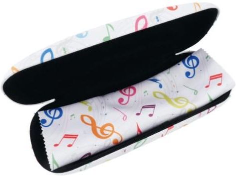Etui na okulary w klucze wiolinowe ze ściereczką z mikrofibry Najważniejsze cechy: Etui do okularów Wymiary etui: 16,5 x 6,5 x 3,5 cm Wymiary ściereczki: 15 x 18 cm Ściereczka z mikrofibry
