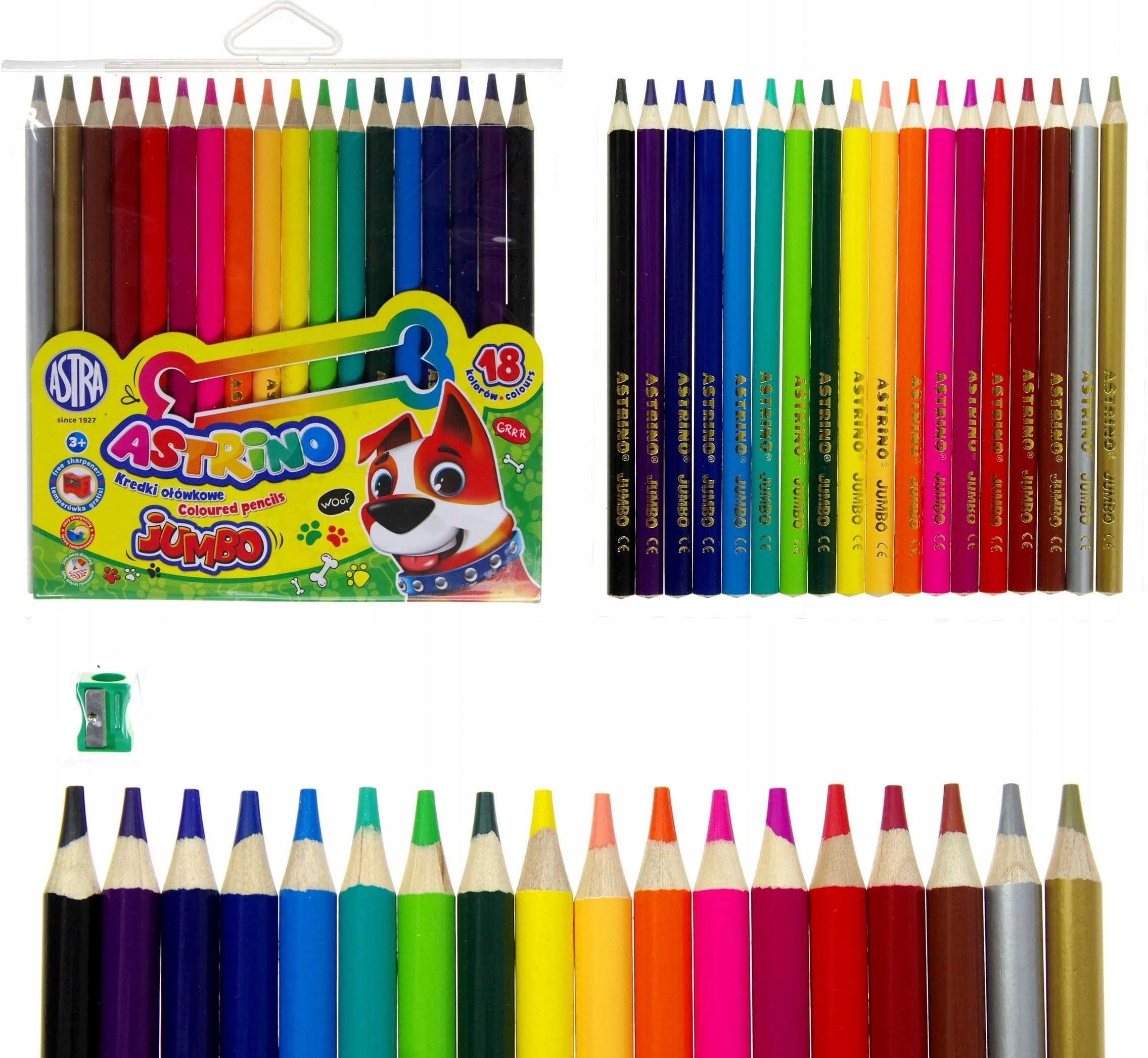 Astra Kredki Ołówkowe 18K Jumbo Okrągłe + Temperówka Ostroróg