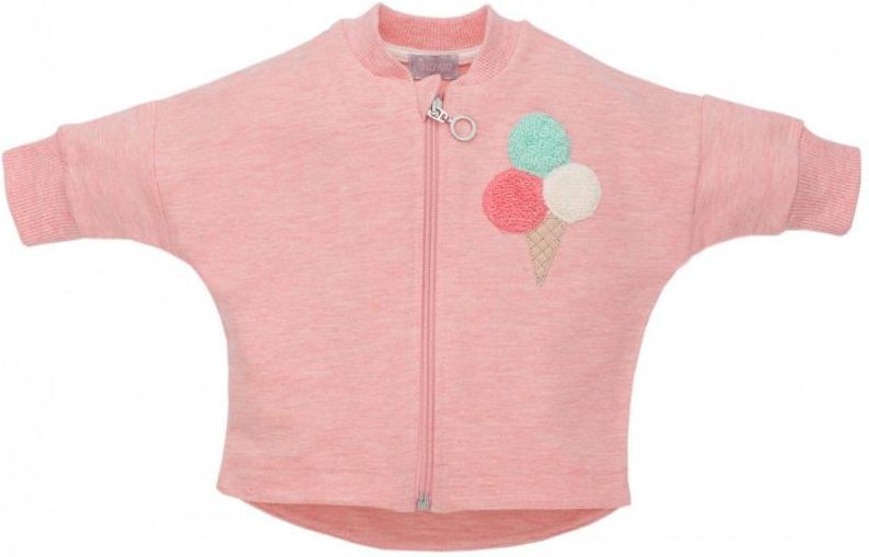 Urocza, wakacyjna bluza, uszyta z mięciutkiej bawełny 95% w kolorze jasno różowego melanżu. Po lewej stronie wszyta mięciutka, wypukła aplikacja – kolorowy lód w wafelku. Pętelka na szczycie ekspresu zapobiega podrażnianiu delikatnej skóry maluszka. Cechy produktu - Materiał: Bawełna 95%, poliester 5% - Marka: Pinokio - Wyprodukowano: w Polsce - Kolekcja: Love Summer