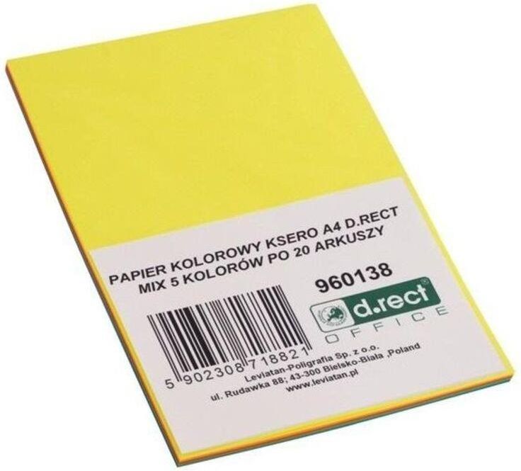 Papier ksero A4/100kartek , 5 kolorów po 20 arkuszy D.RECT folia,