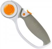 Nóż krążkowy Fiskars 45 mm z tytanowym ostrzem Wygodny w użyciu i poręczny, a jednocześnie bardzo ostry nóż krążkowy renomowanej marki Fiskars. Idealny do cięcia papieru, tektury, tkanin, dzianin czy skór. Tytanowe ostrze zapewnia gładkie, precyzyjne cięcie nawet kilku warstw materiałów. Nóż świetnie sprawdzi się przy tworzeniu patchworków, ale też np. w modelarstwie. Wykonana w technologii Softgrip™ rękojeść noża dobrze leży w dłoni i nie ślizga się, przez co użytkowanie go jest bardzo komfortowe. Specjalna blokada chroni przed skaleczeniem się zarówno podczas cięcia, jak i wtedy, gdy nie korzystamy z noża. Do stosowania noży krążkowych niezbędna jest specjalistyczna mata, która zabezpiecza powierzchnię blatu i ostrze przed uszkodzeniem. Szeroki wybór mat znajdziesz w naszym sklepie.