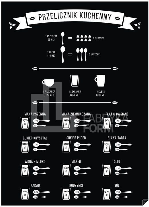 Follygraph Plakat Przelicznik Kuchenny Czarny 40 X 50 Cm Ostroróg