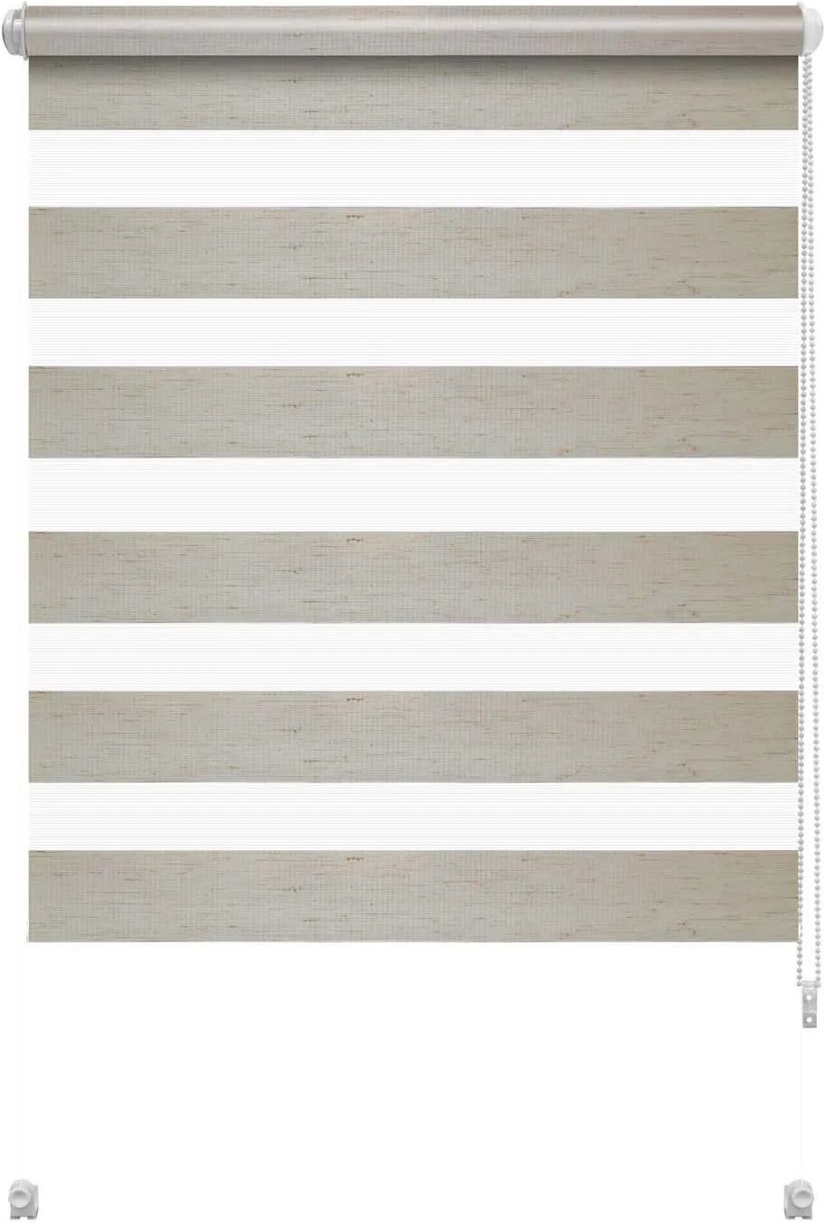 Gardinia Roleta Mini SMART D&N Z-740 silv 57,5 x 140 cm naturalna Praktyczna i estetyczna roleta w ponadczasowej kolorystyce potrafi całkowicie odmienić wygląd wnętrza, nadając mu nowoczesny i elegancki charakter. Estetyczny wygląd i subtelna kolorystyka Roleta Mini Premium typu dzień/noc wyróżnia się estetycznym splotem tkaniny w gęste i rzadkie pasy oraz uniwersalną kolorystyką. Dzięki swojej stylowej formie doskonale sprawdzi się w każdym pomieszczeniu, stanowiąc funkcjonalną dekorację okna. Montaż i obsługa Produkt jest zmontowany na belce nośnej i gotowy do instalacji na skrzydle okna bezpośrednio po wyjęciu z opakowania. Roleta została wyposażona w żyłkowe prowadzenie boczne, które skutecznie utrzymuje tkaninę przy ramie nawet przy uchylonym oknie. Regulowany dopływ światła Zastosowana tkanina umożliwia płynną regulację dopływu światła w zależności od potrzeb użytkownika dzięki pasom, które nachodzą na siebie. Takie rozwiązanie pozwala na precyzyjne zarządzanie stopniem nasłonecznienia, zapewniając komfort i prywatność w ciągu dnia oraz nocy.