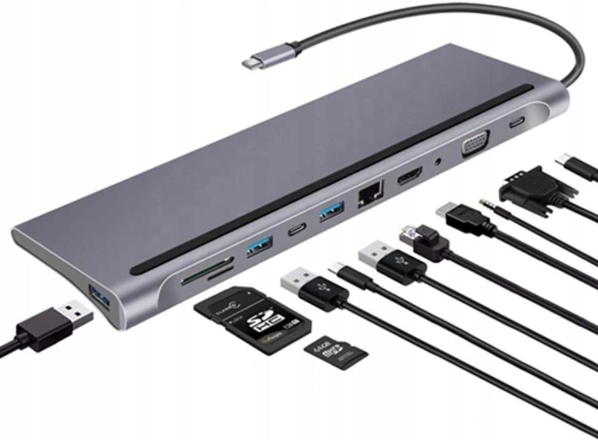 HUB USB-C HDMI 4k VGA LAN RJ45 3x USB 3.0 SD FT Card Jack 3,5mm Power Delivery 87W ✔️Adapter HUB USB-C umożliwia przesyłanie sygnału audio i video z laptopa na ekran monitora, telewizora lub projektora z wejściem HDMI/VGA w rozdzielczości do 4K ✔️Posiada funkcję Power Delivery - umożliwia ładowanie …