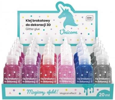 Klej Do Dekoracji Brokatowy 20Ml Unicorn 24szt. Interdruk Ostroróg
