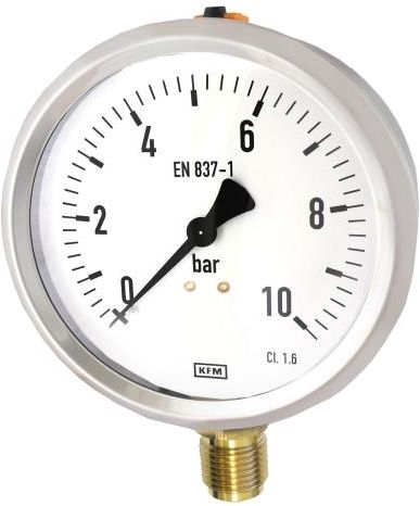 Uniwersalny manometr glicerynowy do użytku przemysłowego. Dzięki zastosowaniu gliceryny manometr może być wykorzystywany do urządzeń generujących znaczne drgania. Gliceryna zapobiega drganiu wskazówki i zapewnia precyzyjny odczyt. DANE TECHNICZNE: Zakres pomiaru [bar] 0-10 Tarcza [mm] 100 Przyłącze …