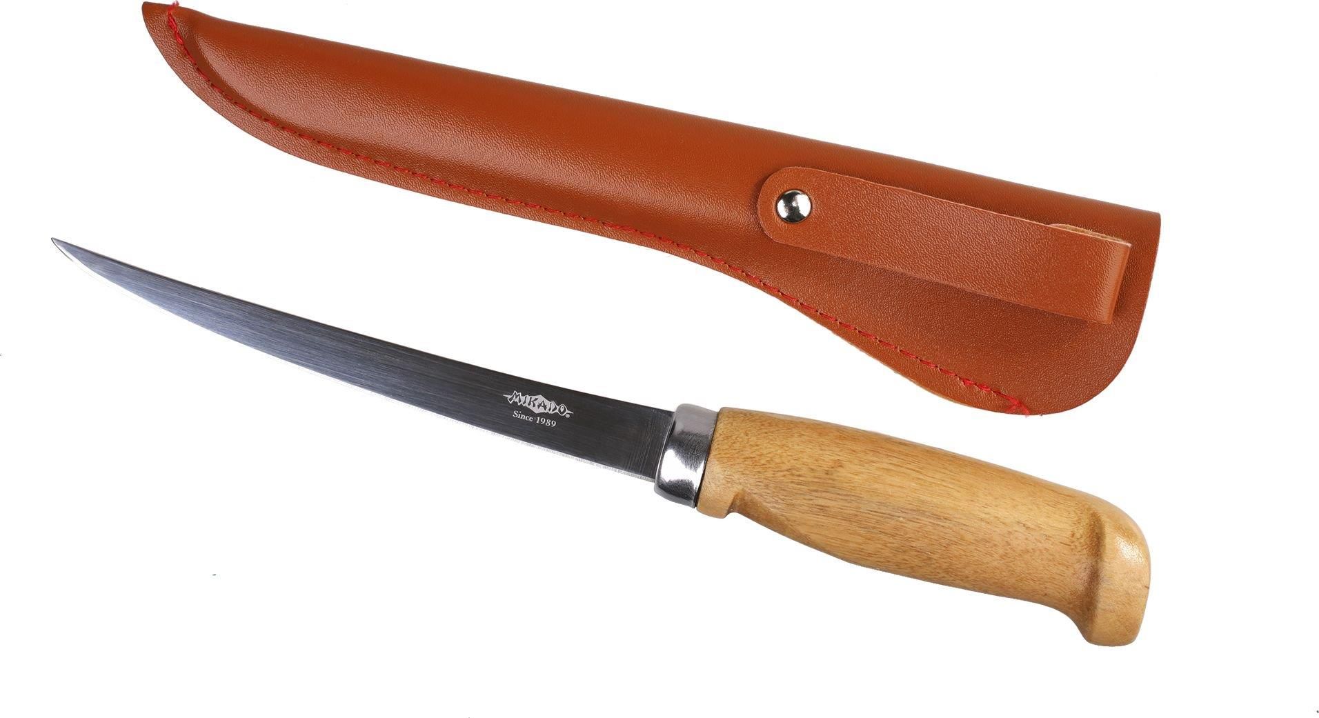 Mikado nóż wędkarski do filetowania ostrze 6 cali Najwyższej klasy, wykonany z japońskiej stali nierdzewnej nóż do filetowania ryb. Niewiarygodnie lekki, o specjalnie wyprofilowanym, odpowiednio miękkim ostrzu idealnie dopasowuje się do kręgosłupa ryby, dzięki czemu mięso jest odcinane przy samej kości. Długość: 27cm