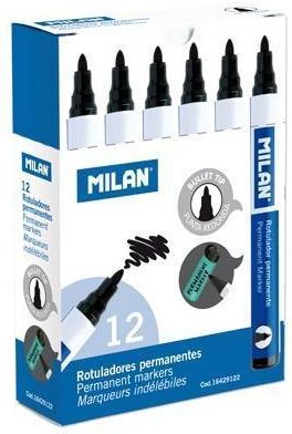 MILAN Marker permanentny okragły czarny (12szt) Ostroróg
