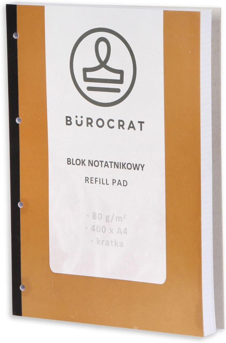 blok notatnikowy format A4 klejony, z możliwością wpięcia stron do segregatora gramatura papieru: 80 g/m2 liczba stron: 400 Produkt poekspozycyjny lub końcówka magazynowa. Może posiadać nieznaczne uszkodzenia opakowania (np. metki cenowe, przybrudzenia, zarysowania, zagięcia, naddarcia), które nie wpływają na funkcjonalność produktu.