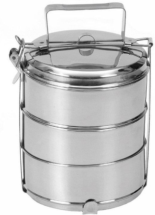 PRAKTYCZNA- Menażka do przenoszenia żywności 3 poziomowa. Menażka składa się z trzech osobnych pojemników scalonych w jedno naczynie. Każdy pojemnik ma pojemność 1 litra. W zestawiepokrywka oraz stelaż z uchwytem. Wysokość menażki to 27 cm a średnica 16 cm. STALOWA- Wykonana z najwyższej jakości stali nierdzewnej. Odpowiednio użytkowana posłuży długie lata. Nadaje się do mycia w zmywarce do naczyń. WYGODNA - Menażka posiada uchwyt, za pomocą którego wygodnie i bezpiecznie przeniesiemy przygotowane posiłki. Pojemniki mogą służyć również jako miska do bezpośredniego spożycia posiłków. FUNKCJONALNA- Menażkanie jest w 100% szczelna (nie posiada uszczelki), żywność należy przenosić w pozycji pionowej, by uniknąć wylania zawartości. Utrzymywanie temperatury w menażce jest uzależnione od warunków atmosferycznych w jakich się przebywa.Pojemniki nie służą do podgrzewania w nich żywności. UNIWERSALNA -Menażkasprawdzi się na obozach turystycznych, wyjazdach pod namiot lub piknikach. Można wykorzystać ją także do przechowywania i przetransportowania dań zabieranych do pracy lub kupowanych na wynos. Menażka obiadowa do transportowania żywności. Wykonana z materiałów bezpiecznych dla zdrowia i neutralnych dla żywności. Posiada trzy pojemniki, które pozwolą odpowiednio przenieść posiłek. Pojemniki połączone są klamrą, dzięki czemu możemy wygodnie je piętrować. Doskonale sprawdzi się podczas wędrówek, biwaków, górskich wypraw oraz innychwypadów.Latem możemy wykorzystać ją do przechowywania i przenoszenia lodów np. podczas przyjęć w ogrodzie.Oryginalny produkt czeskiej marki Orion.Wyprodukowano zgodnie z europejskimi standardami.