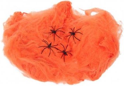 PAJĘCZYNA pomarańczowa, 4 PAJĄKI Waga: 20g Kolor: pomarańczowy Materiał: poliester Ilość sztuk: 1 szt. Niezbędny element dekoracji na święta Halloween, który wprowadzi zarówno dzieci, jak i dorosłych w odpowiedni, nieco przerażający nastrój Wykonana z poliestru, pajęczyna jest nie tylko łatwa do zainstalowania, ale też odporna i elastyczna, co pozwala na jej rozciąganie między różnymi elementami otoczenia Do zestawu dołączone są cztery czarne, plastikowe pająki To doskonały wybór dla wszystkich, którzy chcą stworzyć mroczny i niepowtarzalny klimat na swojej imprezie halloweenowej