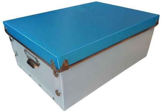 - Stylowe pudełko na dokumenty lub drobiazgi. - Wygląda świetnie zarówno w domu jak i w biurze. - Pudła wykonane z mocnego materiału PP - Dodatkowo posiada mocny, metalowy uchwyty ułatwiające przenoszenie. - Łatwy i szybki system składania pudeł na zatrzaski, pozwala zaoszczędzić miejsce, gdy nie są używane. - Ponowne składanie nie wymaga zastosowania żadnych narzędzi. - Trwałość produktu podnoszą okute, metalowe narożniki pokrywy. - Idealne do przechowywania zdjęć, notatek, listów, notesów, książek itp. - kolor transparentny/pokrywka niebieska